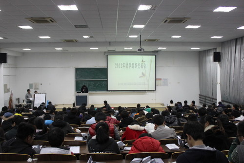 12月10日晚6:30,土建学院“2012年团学组织交流大会”于SB102成功举办。土建学院团委副书记夏文来老师出席本次大会,团学组织全体成员参加大会。