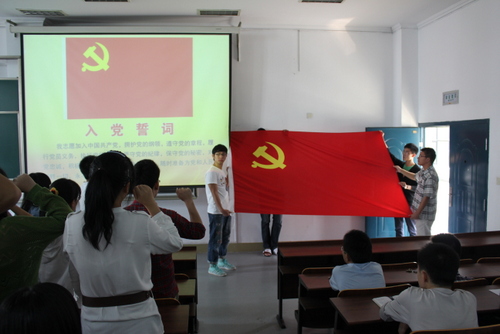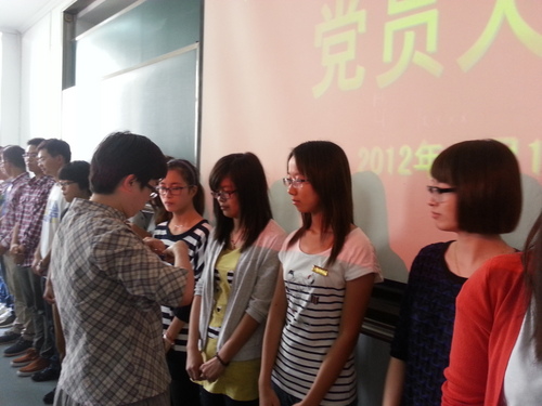 大会上,李萍萍老师为新一批预备党员佩戴了党牌。党员代表陈学清领誓,党员们面向鲜红的党旗,郑重宣誓。“为共产主义奋斗终身,随时为党和人民牺牲一切,永不叛党。”全体党员又一次经受了洗礼。挂党牌不仅仅是个形式,更警惕着党员们以身作则,影响和带动周围的群众共同实现党的纲领和路线的行动。