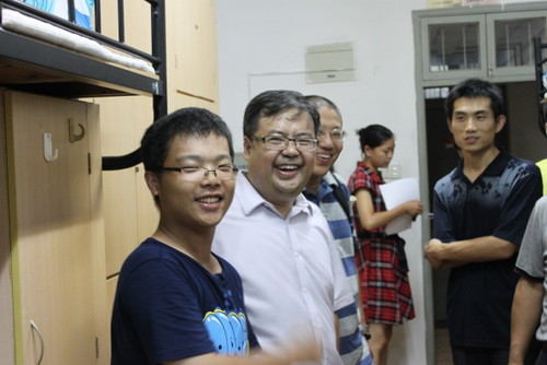 9月2日下午3时,土建学院院长谢新宇老师、党总支书记李萍萍老师、副院长张克明老师、孙家瑛老师、王银辉老师一行领导走访2012级新生寝室。