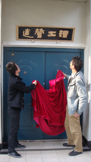 8时20分,张克明副院长和夏文来老师一同为匾额揭下帷幕,从此这个专教有了属于自己的名字——“理工营造”,班级32名同学共同见证了这个属于他们的时刻。匾额以墨色作底,上书“理工营造”四个大字,金色勾字描边,简洁醒目又颇有一股古朴之风。匾额的制作者诸杭冰同学告诉记者,“营造”二字为最早中国古代对于建筑建造的称呼,取该二字也表达了班级同学对于中国传统文化的尊重与偏爱。班级除制作班级匾额外,还制作了书架、照片墙、公告栏,开设交流时段,利用QQ群共享课堂笔记与各种专业资料,为班级整体专业氛围的营造制定了一系列的相关措施。目前,这些措施实施后颇有成效,大大加强了班级凝聚力和班级整体的专业学术气氛。