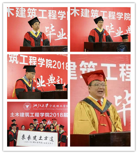 土木建筑工程学院长凌道盛老师代表全院教职工向全体毕业生表达了祝福,并给大家嘱咐了三点,一是嘱咐大家走上社会,要树立目标、学会规划人生;二是要满怀信心、善于创新;三是要踏实肯干、持之以恒,心向理想、快乐生活,书写最美人生篇章。