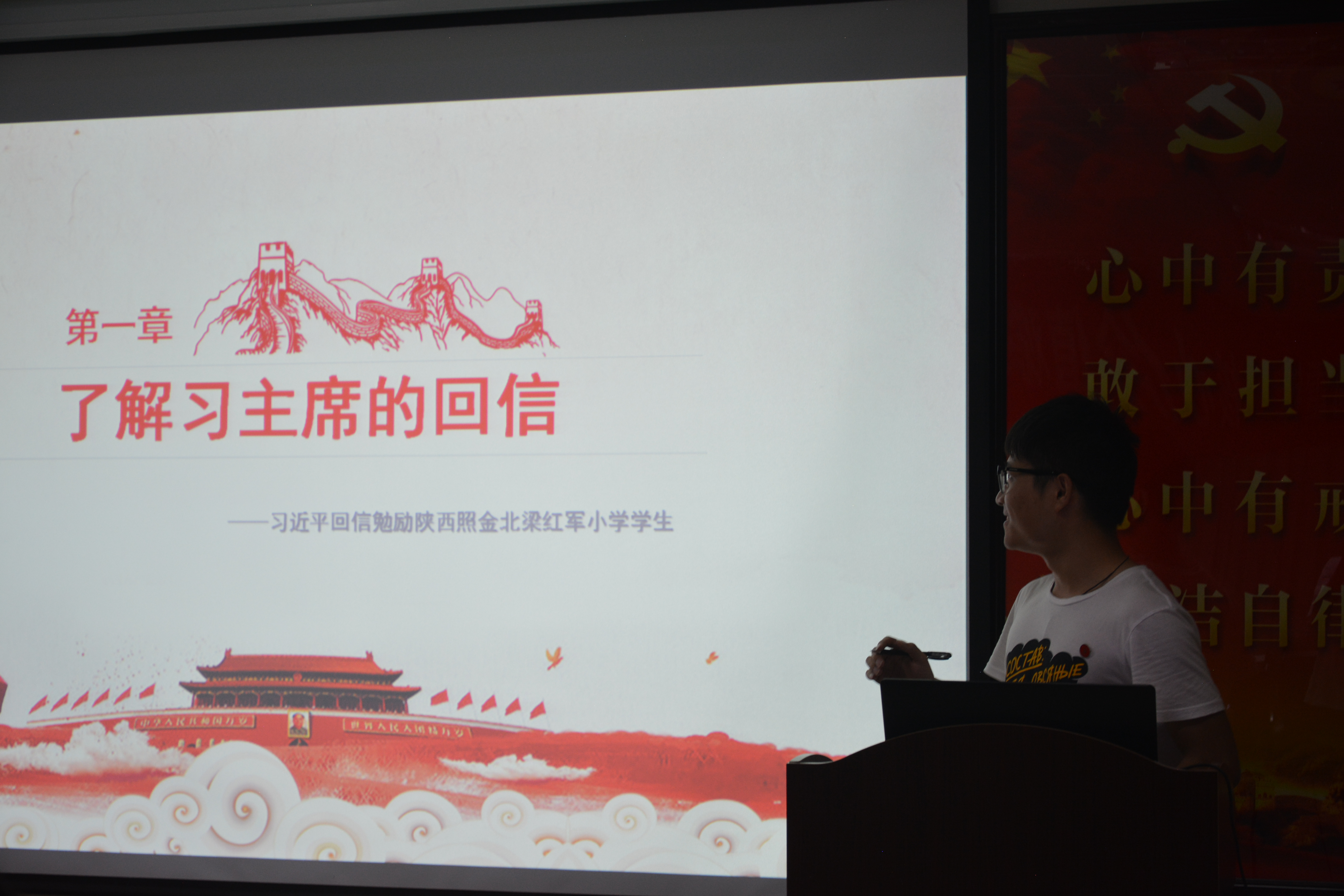 这次活动由支部内党小组负责准备,翁晟展同志主讲。本次活动的主题“学回信、悟初心、践使命”,首先,主持人代领全体党员了解习主席的回信,尤其是今年3月习近平总书记给余姚横坎头村全体党员的回信,分析习近平主席回信的内涵。随后,介绍中国共产主义青年团十八次全国代表大会,这次会议的召开也让我们看到了高校团组织在培养社会主义接班人的过程中将起到重要的作用,而学生党员就要是发挥自己的先锋模范作用,代领各个班级团支部创新争优,全面提升能力。最后,支部内各同志根据近期国内外时事政治,对悟初心、践使命发表自己的感想。