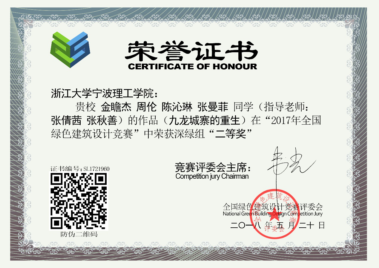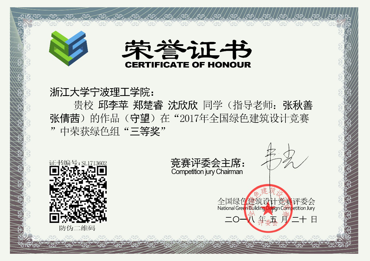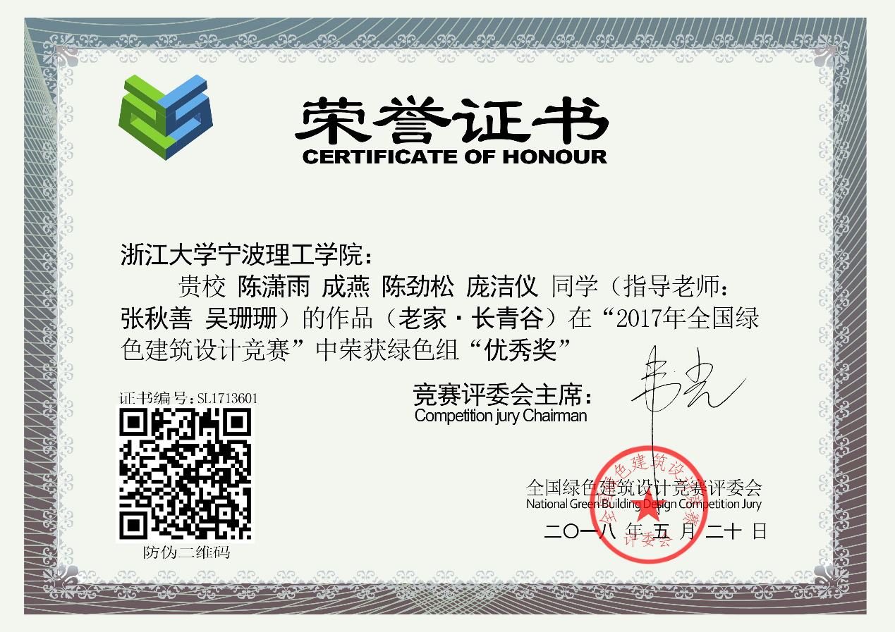 张秋善老师 在本届全国绿色建筑设计竞赛中,被授予“全国杰出教师特等奖”称号,排名全国优秀指导教师 第六名。