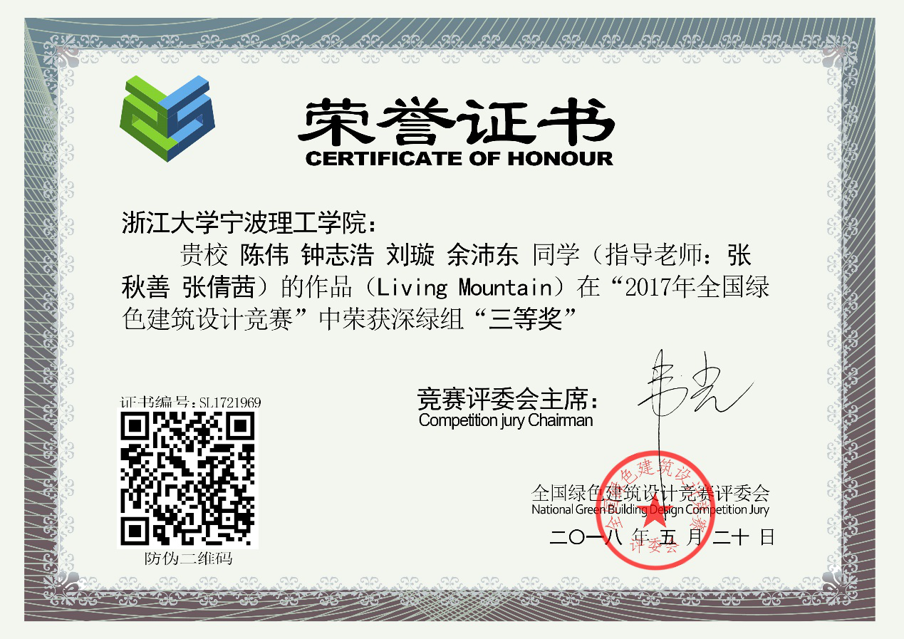 张旭峰老师 在本届全国绿色建筑设计竞赛中,被授予“全国杰出教师特等奖”称号,排名全国优秀指导教师 第十二名。