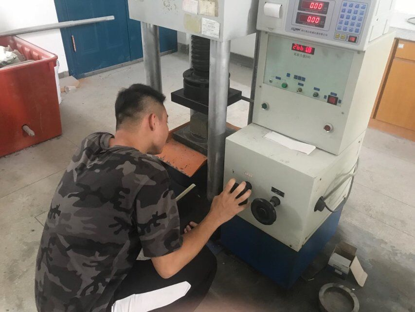 按照既定实验方案,该团队尽然有序的准备着今天的实验。在研究生指导员的帮助下,该团队将大小为100×100×100mm、70.7×70.7×70.7mm以及4×4×4mm的试件从养护地点取出后进行抗压强度实验。该团队将试件安放在试验机的垫板上,使试件的承压面与成型的顶面垂直,试件的中心应与试验机下压板中心对准。之后即可开动试验机。