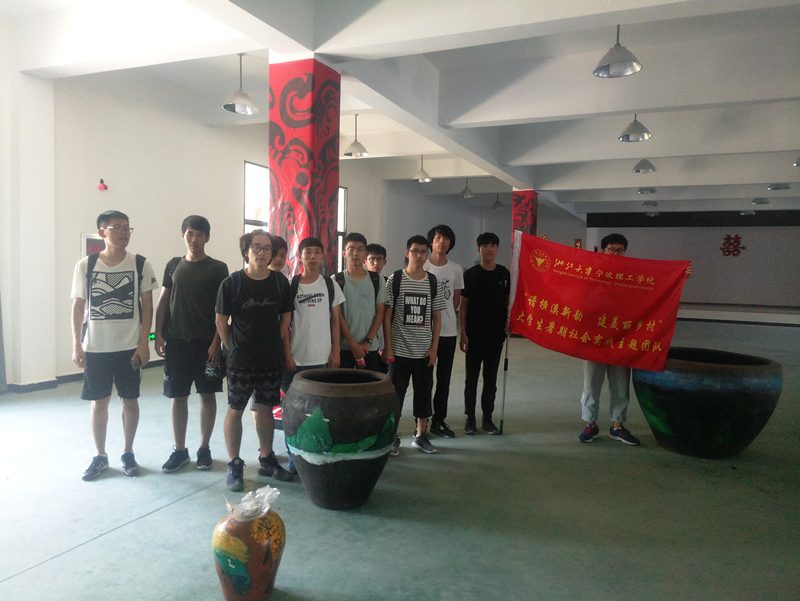 2018年7月18日在鄞州区横溪镇上街村,浙江大学宁波理工学院土建学院“谱横溪新韵,建美丽乡村”大学生暑期社会实践团队B小组分为两部分进行了暑期社会实践活动:酒缸绘画和整理图书。