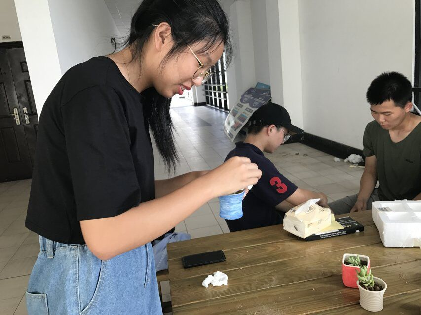 2018年7月18日8点半在浙江大学宁波理工学院SC大厅,泥水共治小队的队长,副队长以及小组成员集合完毕。之后,该团队按照预定方案进行多肉制作活动。