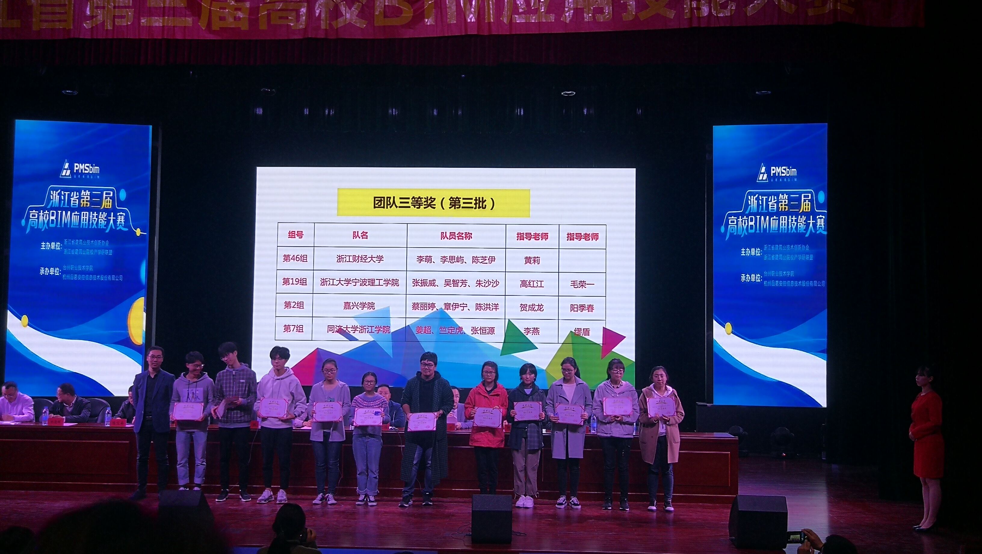 2018年11月9日-11日,由浙江省建筑业技术创新协会和浙江省建筑业院校产学研联盟举办的浙江省第三届高校BIM应用技能大赛在台州职业技术学院召开,来自全省本科、高职高专院校的近百支队伍参加了本次大赛。代表我院出征的张振威、吴智芳、朱沙沙三位同学在BIM建模与深化设计、BIM模板工程设计和BIM施工策划等全部赛项中表现优异,最终取得团队三等奖。