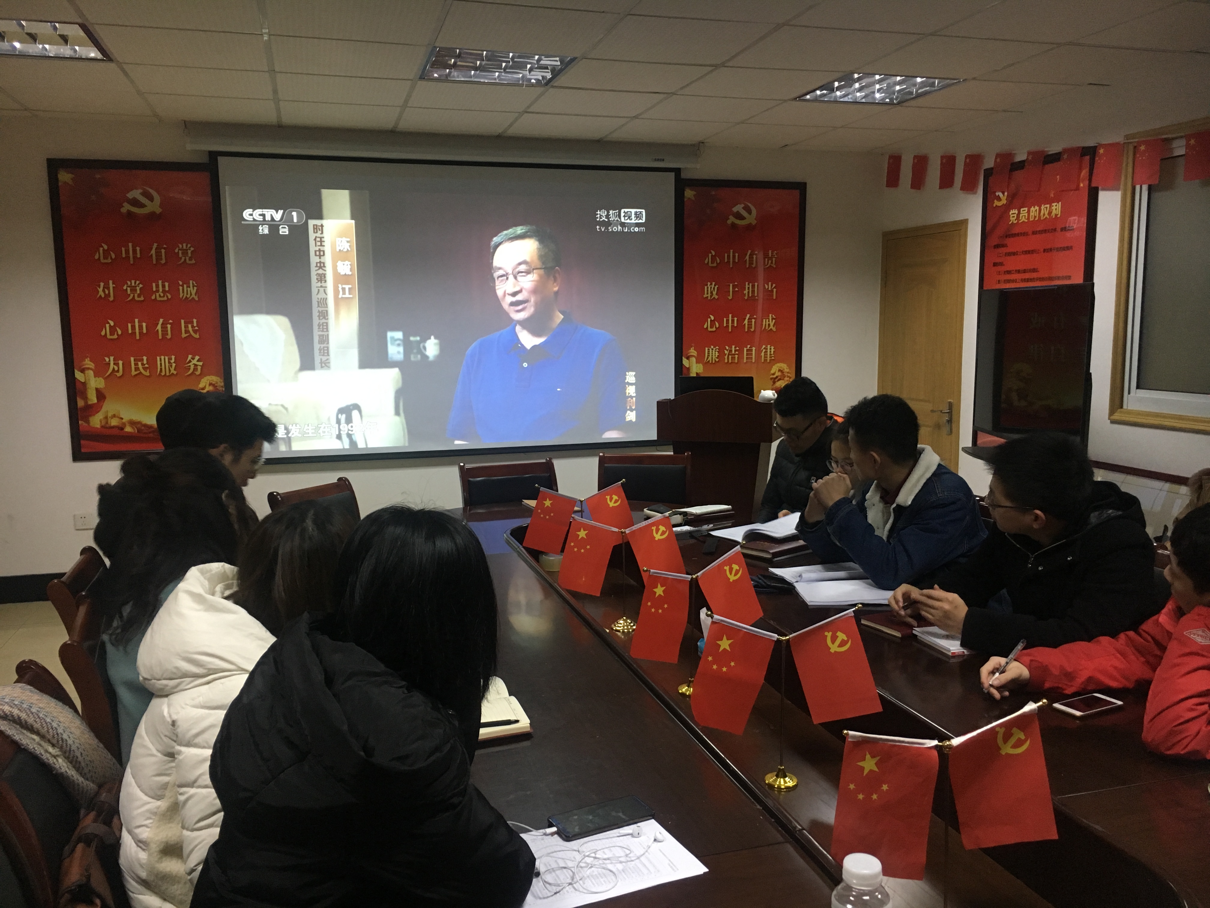 本次会议主要为两个阶段:一、观看大型纪实纪录片《巡视利剑》第二集,对其中“五假干部”等暴露出来的党员发展过程中的问题进行了深入讨论,党的十八大以来中国共产党在全面从严治党上的下力气、出重拳,作为学生支部党员,也要把党员发展等支部基础工作做严、做实;二、深入学习领会《中国共产党支部工作条例》,《工作条例》以习近平新时代中国特色社会主义思想为指导,要求党支部担负好直接教育党员、管理党员、监督党员和组织群众、宣传群众、凝聚群众、服务群众的职责。经过原文学习和交流讨论,支部党员的政治意识和规则意识得到了进一步提升。