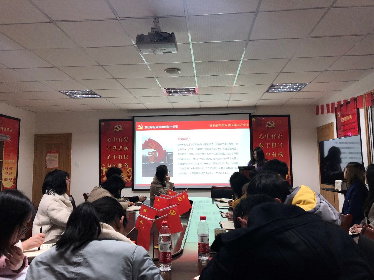 首先,许琼波书记对本学期的支部工作做了规划和梳理,也对大家寄予了期望,要求全体党员维持一贯的工作作风与先进性,明确本学期重点要点工作。接着,由梁一凡、张宁、胡汶宇、丁方圆、董佳蓉和张露六位同志向大家展示了他们当地村委或社区党工委的党建工作情况、特色活动以及发展战略。每个基层党组织的党建工作都有其鲜明的特色,许琼波书记对其进行了总结,并特别强调了几点作为学生支部可以学习参考的突出亮点。最后,在交换见闻阶段,毕业生党员为大家讲解了自身的实习经验,并为低年级党员解答疑惑,低年级党员们也在此番谈话中对自己今后的职业规划有了更清晰明确的目标。