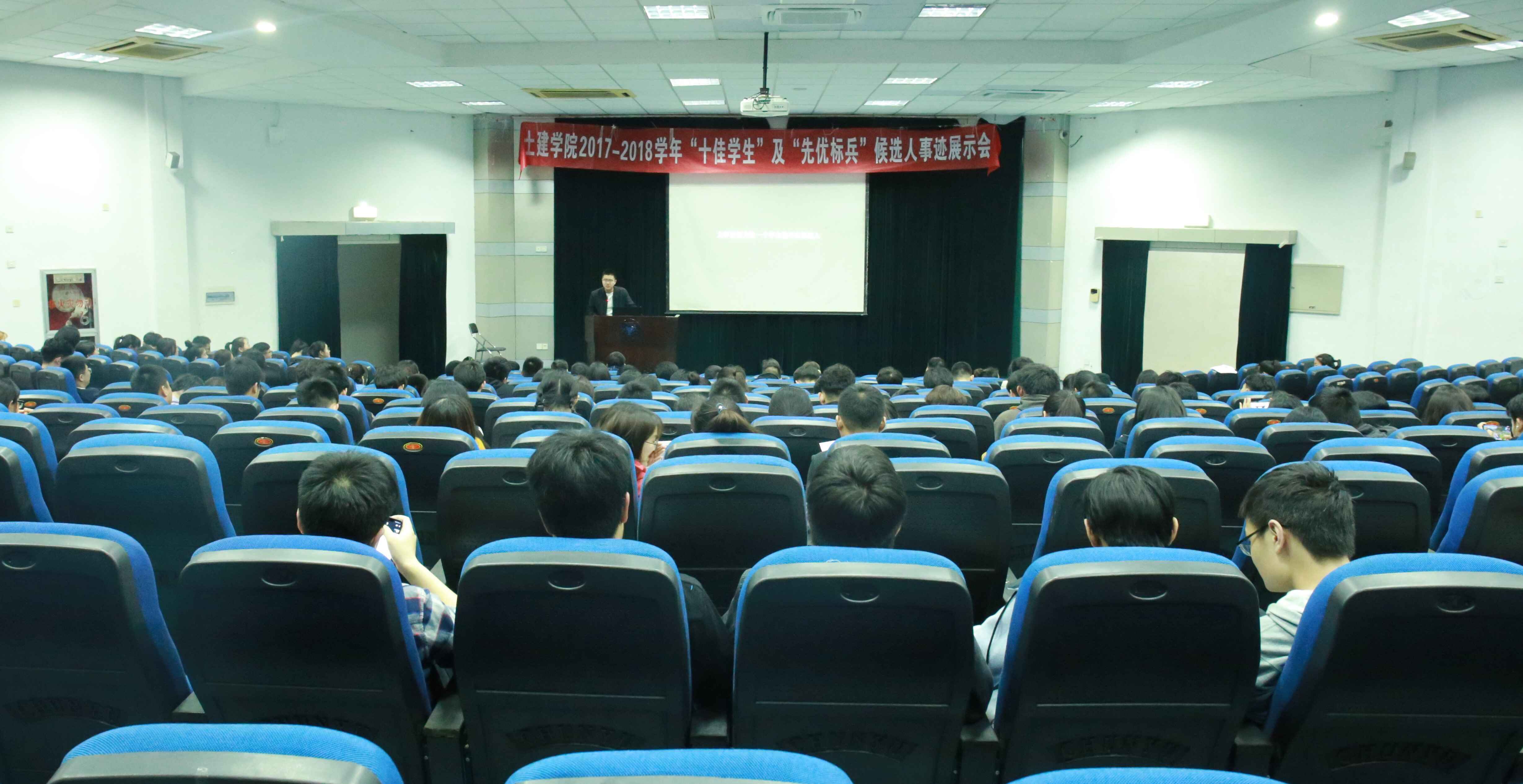 2019年3月20日下午6:30,土建学院2017至2018学年“十佳学生”及“优秀标兵”候选人事迹展示会在nf103举行。土建学院党总支副书记韩晶晶老师、辅导员周星老师、各学生组织负责人、各班级学生代表等参加了本次活动。