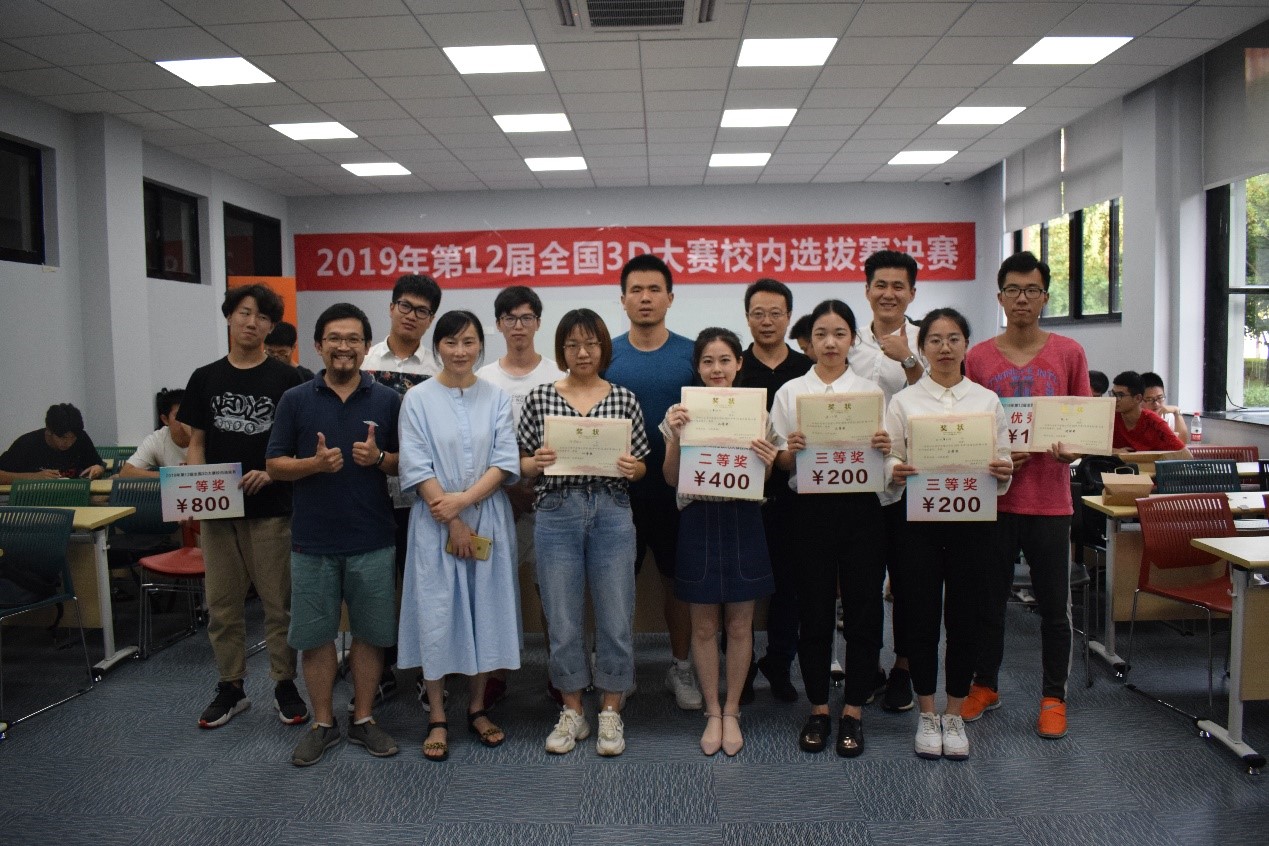 2019年7月23日,第12届全国3D大赛校内选拔赛决赛在NB108举行。作为校A级竞赛,各专业共17支队伍参与其中。选手代表进行现场答辩,经过一番激烈角逐,最终选出一等奖、二等奖、三等奖及优秀奖作品。来自土建学院的6支队伍取得了优异成绩,获奖名单如下: