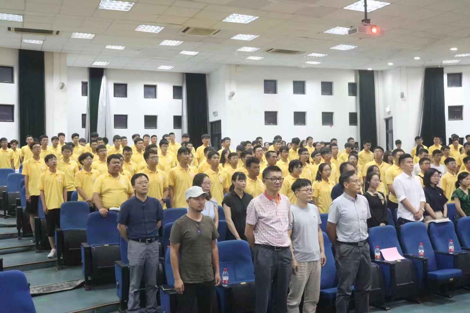2019年9月8日18:30,土木建筑工程学院2019级学生开学典礼在NF103开展,土建学院院长凌道盛、土建学院党委书记王银辉、副院长王文军、各研究所负责人、党政办及学工办人员、2019级班导师和班导师助理以及全体2019级新生参与,典礼由党委书记王银辉主持。