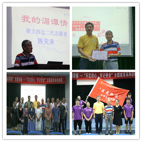 陈天来先生在做了“我的湄潭情”专题讲座时回忆道,他在父亲陈锡臣的经历中,深刻体会到了求是精神的内涵,实事求是,脚踏实地,道理简单而朴实,但需要高尚的人格和不懈的坚持。西迁之路就是无数怀揣求是精神的浙大人一步一步走出来的,也是这样的精神让他在古稀之年毅然扛起传播西迁历史,弘扬求是精神的大旗,以志愿者的身份深入湄潭,守护浙大的第二故乡。“求是黔进”宣讲团学生代表生物工程181班许杰上台分享了他和团队暑期赴黔的西迁之路。作为求是学子,了解浙大精神,宣讲西迁文化,学生党员也是求是魂的传播者,不忘初心,将求是精神传承下去。“国有成均,在浙之滨,昔言求是,实启尔求真。”恢宏的浙大校歌唱出了传承求是精神的谆谆教诲,讲座在全体师生动情吟唱的歌声中落下了帷幕。