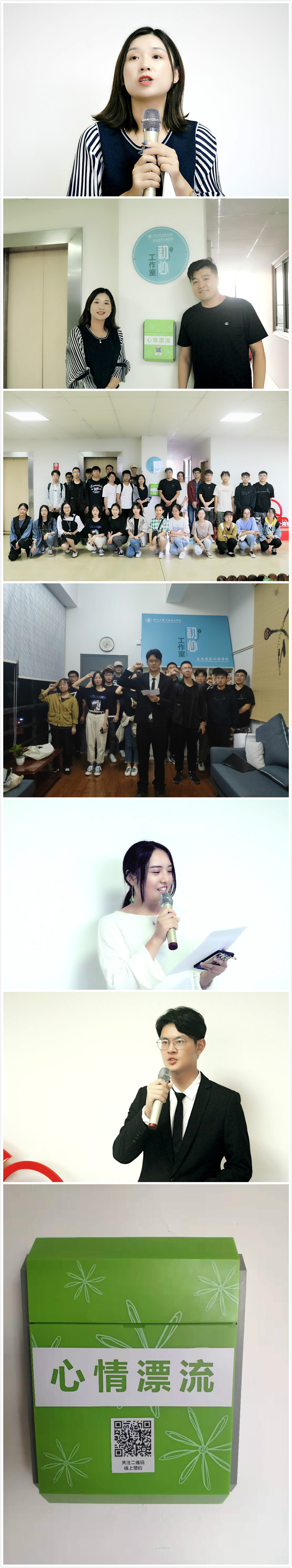 初心工作室是学院心理工作的阵地,当学生把焦虑、困惑倾诉出来的时候,老师和他们一起去面对问题、商讨解决方案,挖掘经验与意义。在这个心灵交流的小空间,期待他们克服挫折,获得心灵的成长。期待在大家共同的努力之下,可以帮助到更多有需要的同学,为建设一个更加阳光的校园贡献力量。