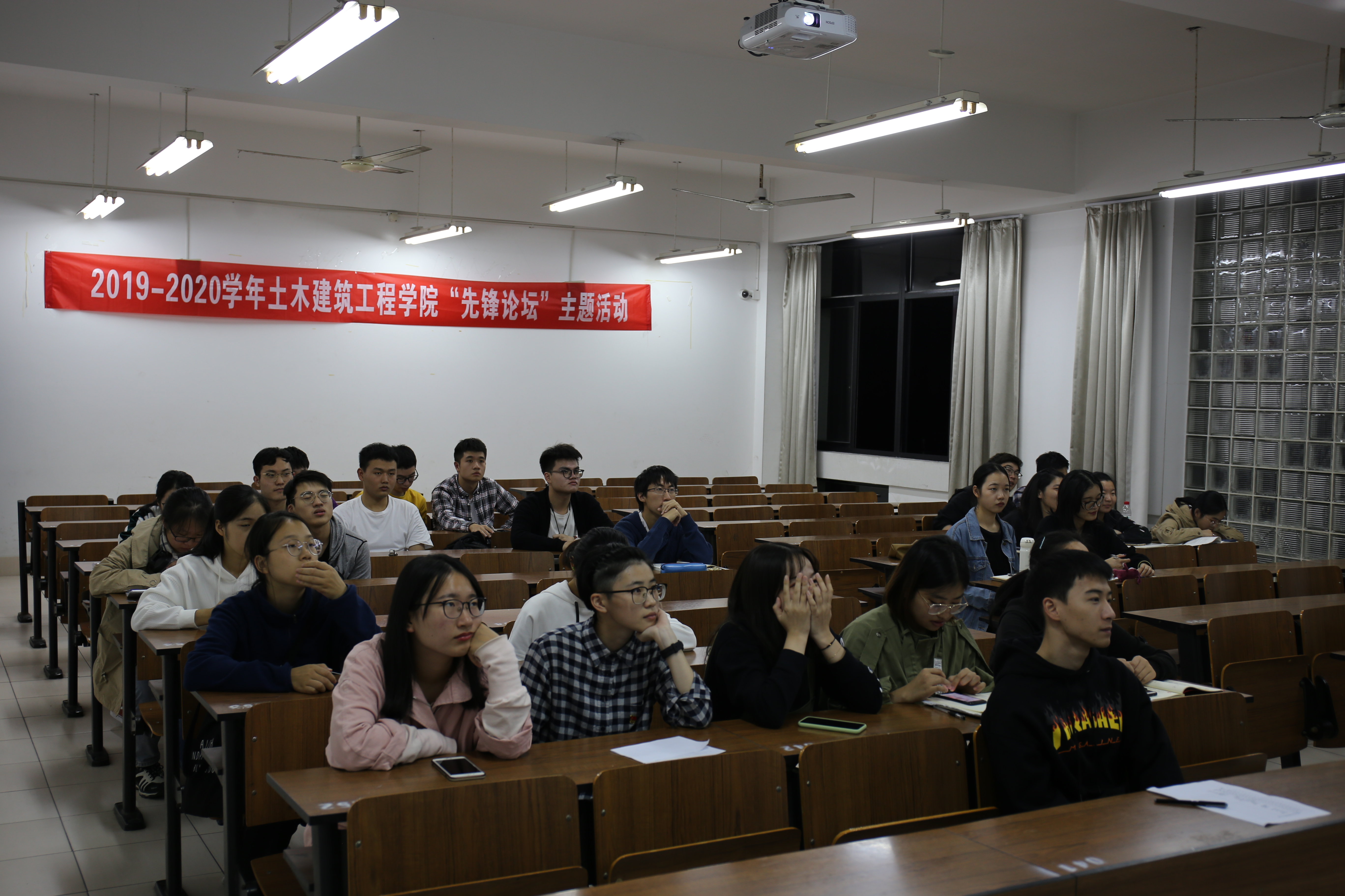 2019年10月18日18:30,土木建筑工程学院红色先锋理论坛在SB310举办。出席本次活动的有土木建筑工程学院辅导员沈露老师,红色先锋主席张敏,学联主席李琦,团委副书记蒋静以及建筑支部全体积极分子。