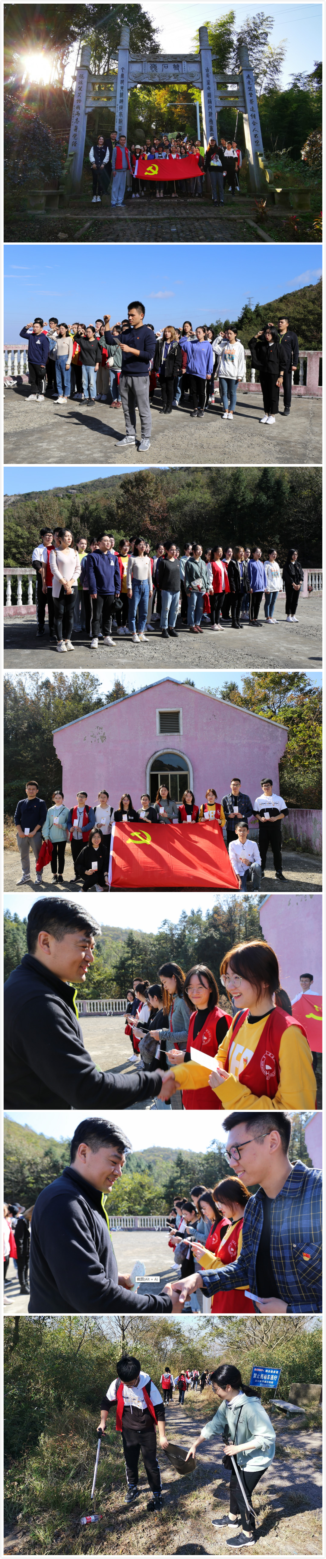 学生党支部的党员们于早上8时在浙江大学宁波理工学院西门出发。每人领取了一套志愿者服装和一个垃圾捡拾器,开始登山,山路陡滑,但党员们互帮互助、相互鼓励,并在登山途中清理沿途的垃圾,待全体党员成功登上松石岭古道最高处后,在张旭峰老师的带领下,全体党员对着党旗郑重宣读入党誓词,随后,土木工程学生支部支委陈铠棋同学宣读了政治生日名单,建筑学学生支部书记张腾老师为各位生日的党员送上政治生日贺卡。下山途中,学生党支部的党员们也自觉利用手中的垃圾捡拾器拾取山上的生活垃圾,并进行了垃圾分类工作,最后,党员们乘车返校,为此次毅行画上了一个圆满的句号。