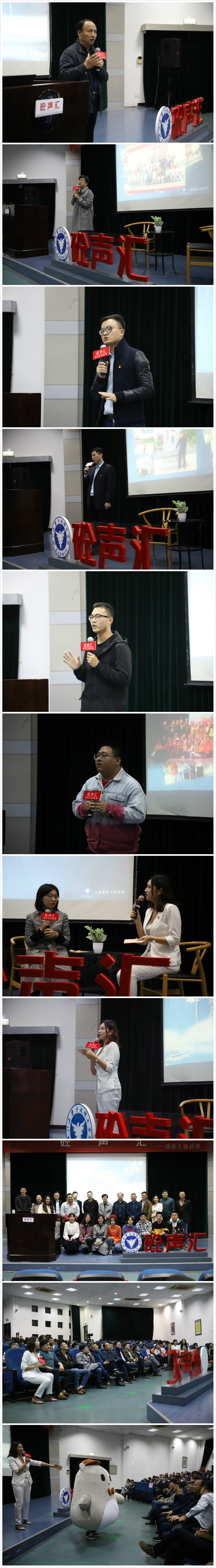 本次“砼声汇”活动,给了在场所有人一个生动的答案与最佳的阅读体验。从学院顶层设计的掌舵者到一线奋斗的执行者,从首届毕业的功成名就的校友到仍在苦读追索的学弟学妹,在他们娓娓道来的故事中,那些如水的时光,汇聚成热血的记忆,让人真切地读出了他们土一般的朴实厚重,木一样的挺拔担当,土建人不输的精神、极致的品质恰如涟漪一样一波一波漾进人的心里!