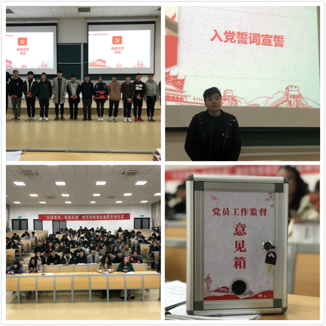 活动伊始,各党支部书记为近半年发展的预备党员佩戴党员徽章,发放《中国共产党章程》。接着,道桥学生党支部支委徐思阳带领全体学生党员进行入党宣誓,土木学生党支部党员许博威同学带领新加入的党员同志宣读《我是党员我是先锋》承诺书。随后各党支部学生支委为新一批入党积极分子佩戴徽章。入党积极分子代表程正品同学带领全体积极分子宣读《我是入党积极分子争做先锋承诺书》。
