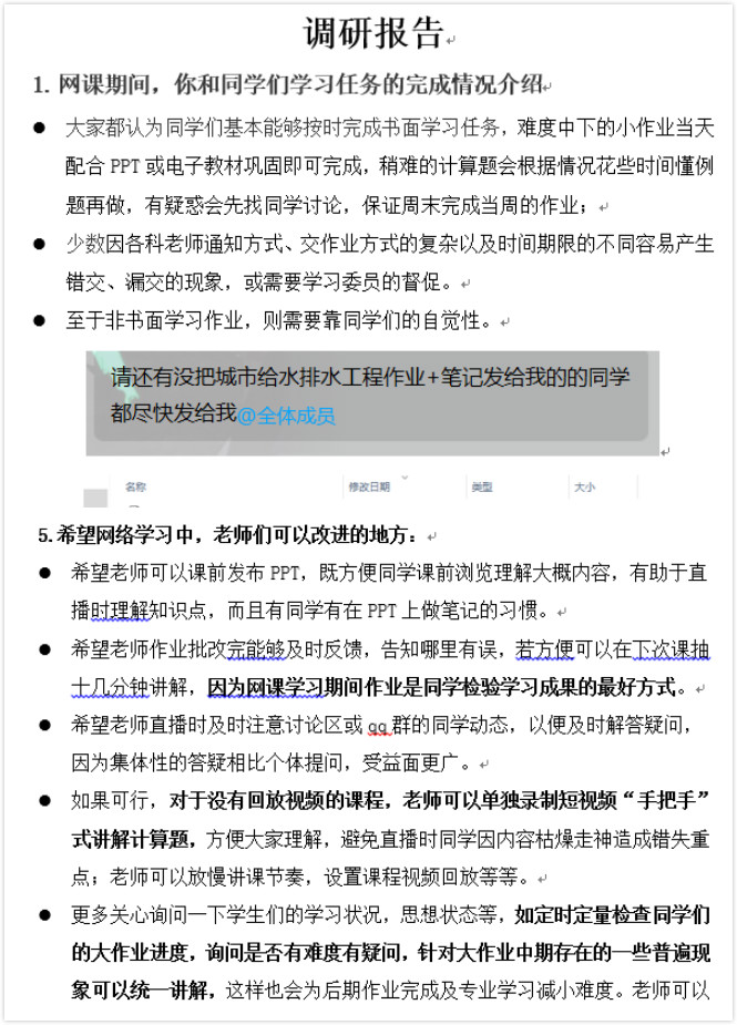 然后,毛江鸿同志介绍了学生党员代表关于线上课程学习的反馈和建议,比如有的同学希望老师直播时及时注意讨论区或QQ群的同学动态,以便及时解答疑问,因为集体性的答疑相比个体提问,受益面更广;有的同学希望老师可以单独录制短视频“手把手”式讲解计算题,方便大家理解,避免直播时同学因内容枯燥走神造成错失重点;有的同学建议老师们多上传一些教学资料,解决没有纸质书在手的学习有些困难等等。各位党员同志认真听取了学生党员代表反馈的建议,并深入展开了讨论,就目前的教学工作情况结合本次主题党日活动均发表了自己的看法,指出了目前线上教学存在的一些不足,并提出解决措施。