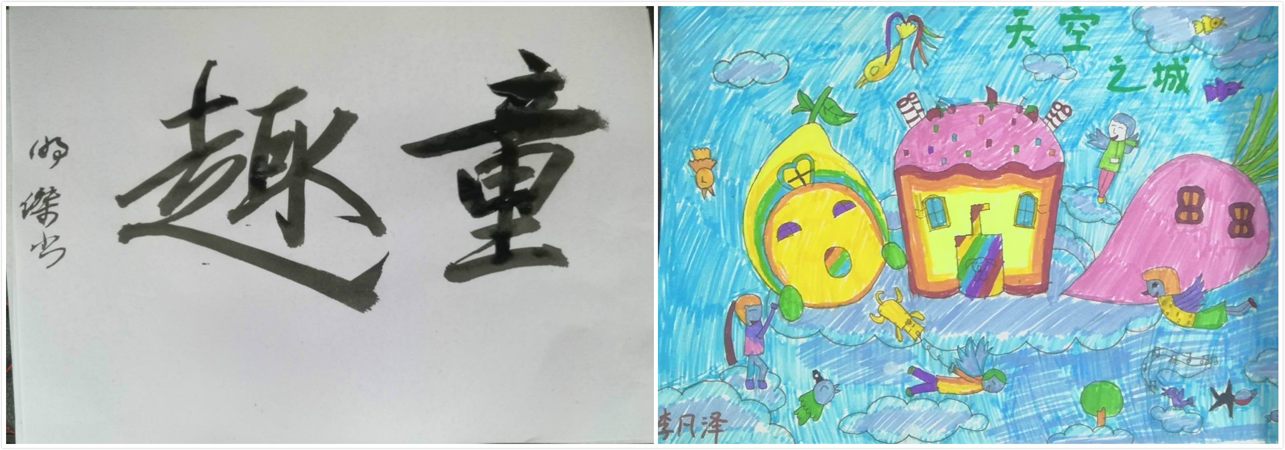 作品内容丰富,有展现当代少年对于祖国抗击疫情的关注和支持的《中国,加油!》,有展现孩子们对于大千世界的描绘和想象的《快乐小精灵》、《七彩人生》、《六一快乐》等作品,还有认真写下的“童趣”二字,这些都展现了孩子们在家长悉心陪伴下健康快乐成长的美好时光。也展现了新时代青少年树立远大志向、培育美好心灵,努力学习、全面发展、勇于开拓进取的精神风貌。本次活动为学院教师增加了一个与孩子相处、享受快乐的时段,让各位教师在紧张的工作生活之余更高质量地陪伴孩子,倾听孩子内心的想法,也培养了孩子的艺术修养、审美情趣,增进了亲子情感沟通。