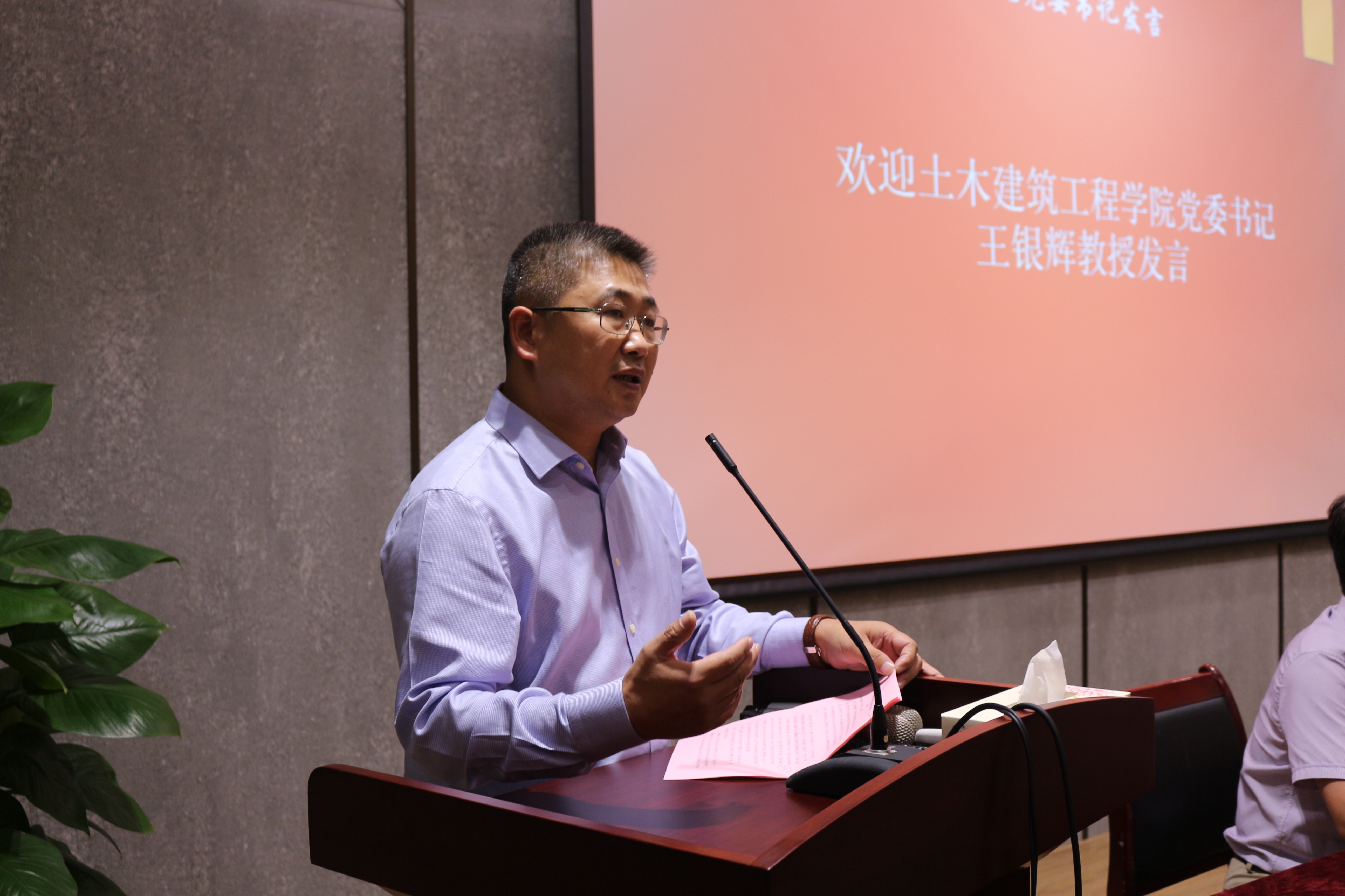 党委书记王银辉代表土建学院对来自全国各地245位的新鲜血液表达了热烈的欢迎,希望新生们能将我们土建学子的匠心精神传承下去。他讲到,学校转设后将进一步加强一流本科建设,土建学院全体师生也将继续奋勇前行,为把学院建设得更强更好而不懈努力,这需要一代代土建人的接续奋斗。土建专业改革正当时,新工科背景下多学科交叉融合和跨界联动已是大势所趋,当今的土建行业不仅要求我们具有勤劳的品质、宽阔的视野、精湛的技术和艺术的情怀,还须具备开拓精神以及创新的方法。他深情地对新生说到:“大学将是你们充分施展才华的舞台,也将是你汲取养分的沃土,期待大家在土建学院这方希望之土上,建造属于自己光明的未来!”