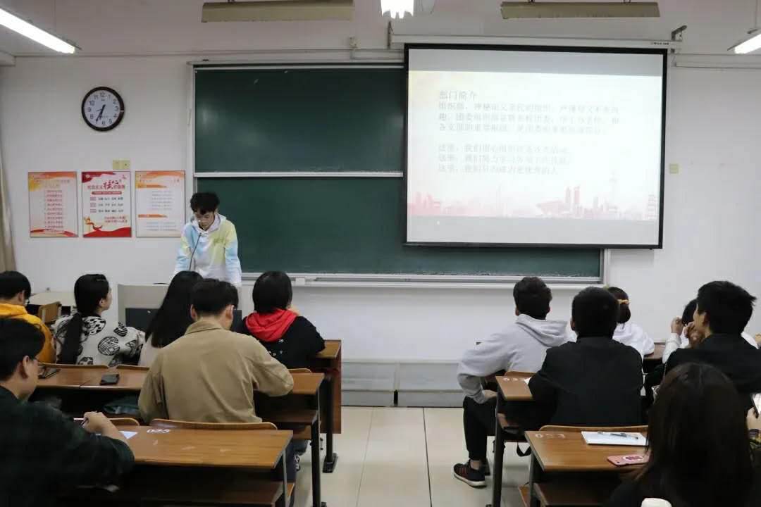 主持人介绍后,团委实践部廖静薇同学针对学分小票的新型申报流程进行详尽地介绍说明。紧接着,团委办公室金一帆同学、组织部陈景阳同学、实践部潘扬林同学、本体部吕艺同学介绍部门的工作与职能使得在场的相关人员有了对团委工作的初步了解。融媒体新闻部李斌同学对新闻稿的格式进行详细的讲解。而后各班团支书提出与工作相关的疑问,由相关的各部门的代表进行答疑。在解答疑问后各班学生干部对团委提出了一些建议和想法以便于帮助建设更好的团委。最后由优秀学生蒋思琪、陈小雪同学代表进行经验分享,以总书记对新青年的期望为核心讲述当代学生应当具有的精神品质。至此本次会议圆满结束。