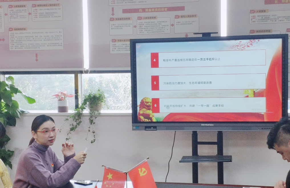 会议伊始,韩晶晶书记为到场党员解读了党的十九届五中全会要点。她结合实例,讲述了党的十九届五中全会上提出的“十方面决定性成就”和“九方面远景目标”等方面内容,让同学们更深入地认识了解全会精神。韩书记阐述了十九届五中全会中实现奋斗目标的12方面举措,她强调了作为大学生党员应该认识到这些宏观的理论对社会发展、个人前景的重要指引作用,务必要以身作则,加强理论学习,将自身的理想与中国发展大势相结合,做好未来事业的建设者和成就者,切实发挥先锋模范作用,引导周围同学积极进步。
