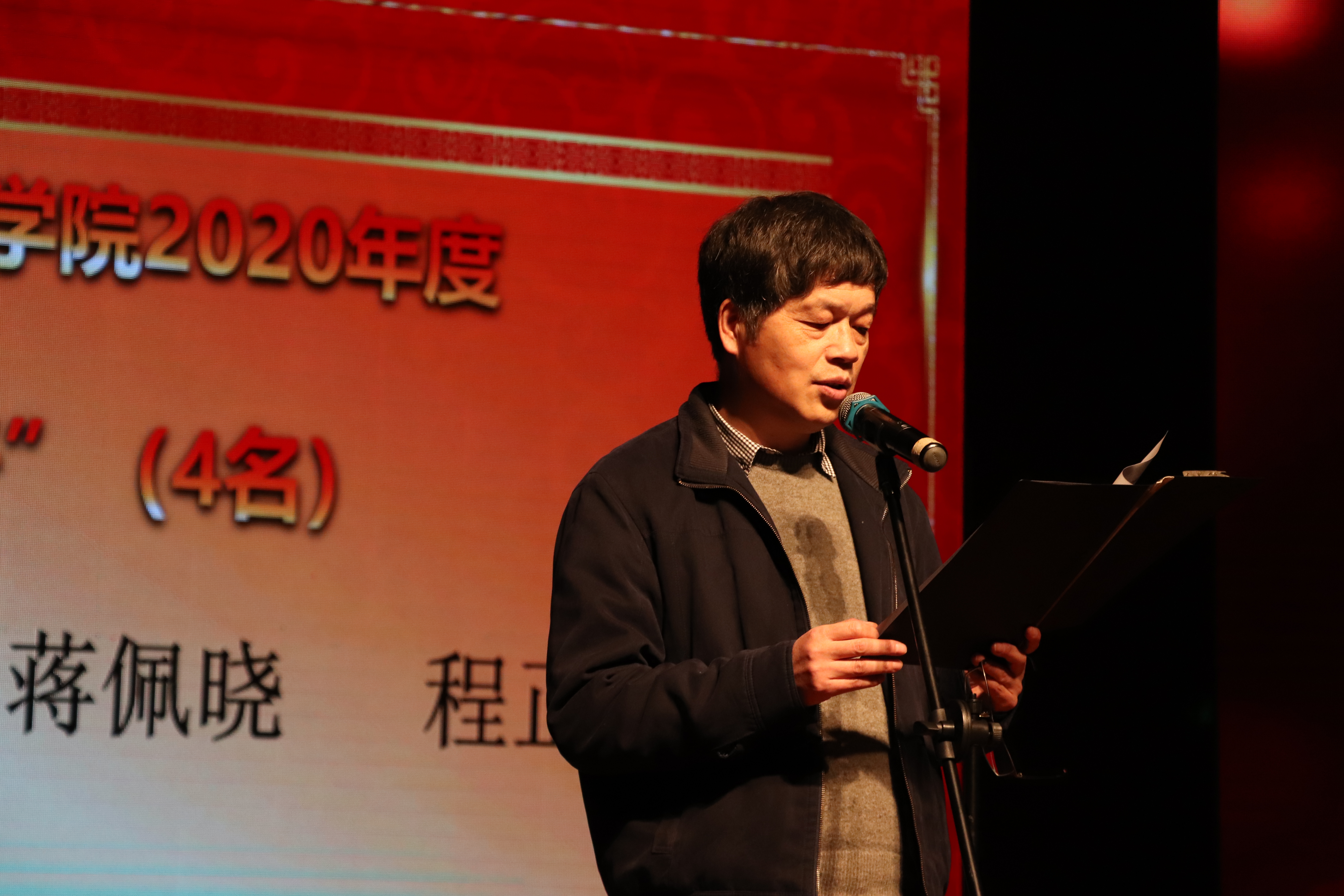 学院副院长张科锋老师宣读国家奖学金获得者名单,国家励志奖学金获得者名单,土建学院“先优标兵”获得者名单,土建学院体育名人堂名单,土建学院学习进步奖获得者名单,土建学院“雷锋学子”和“防疫之星”获得者名单。