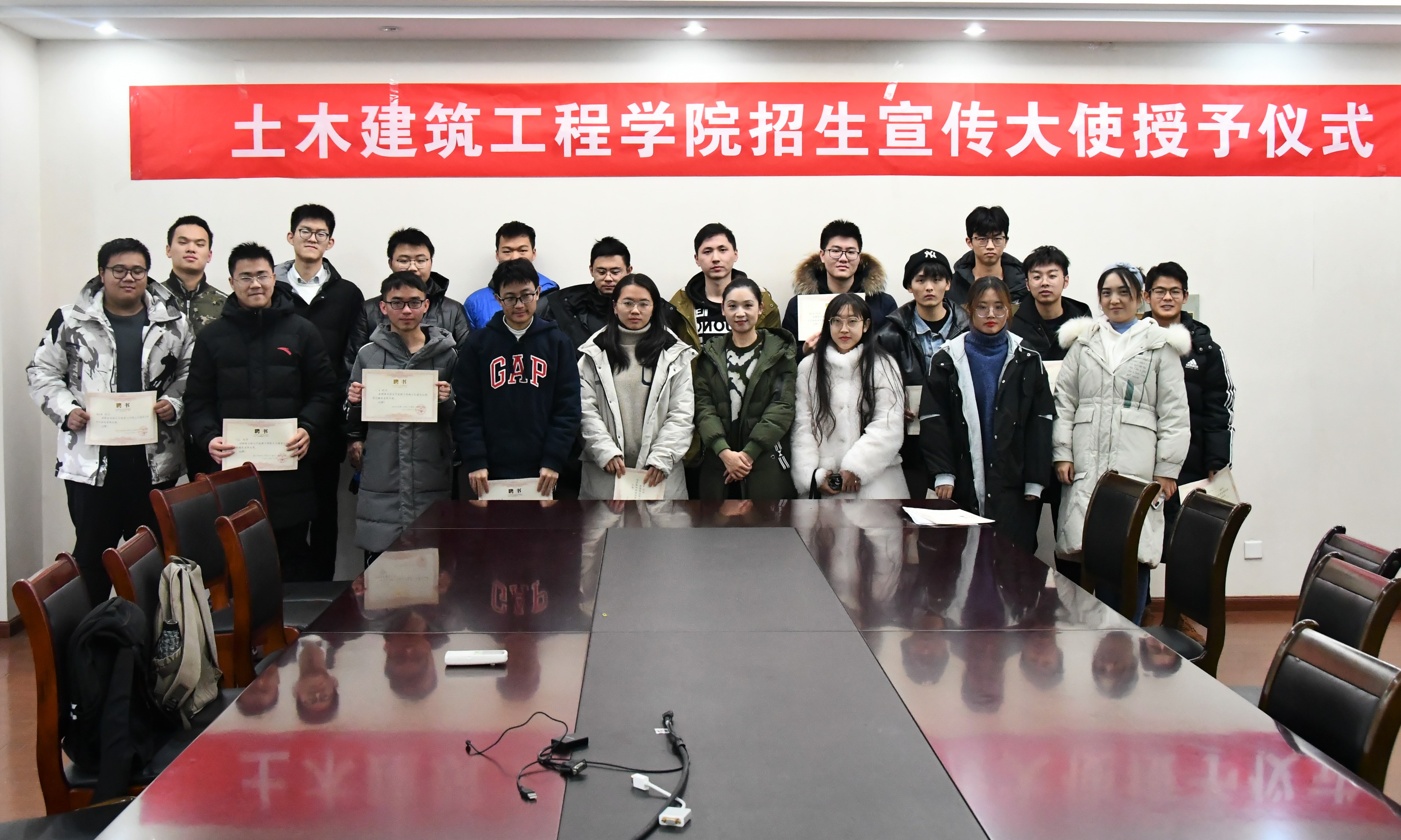 土建学院党委副书记韩晶晶老师讲话,阐述了招生宣传大使今后的工作内容、主要负责地区,强调了招生宣传工作重点,指导同学们要针对符合我们学校录取分数段的学生进行重点宣传和引导。最后,韩老师为每一位宣传人员颁发了聘书并合影留念。