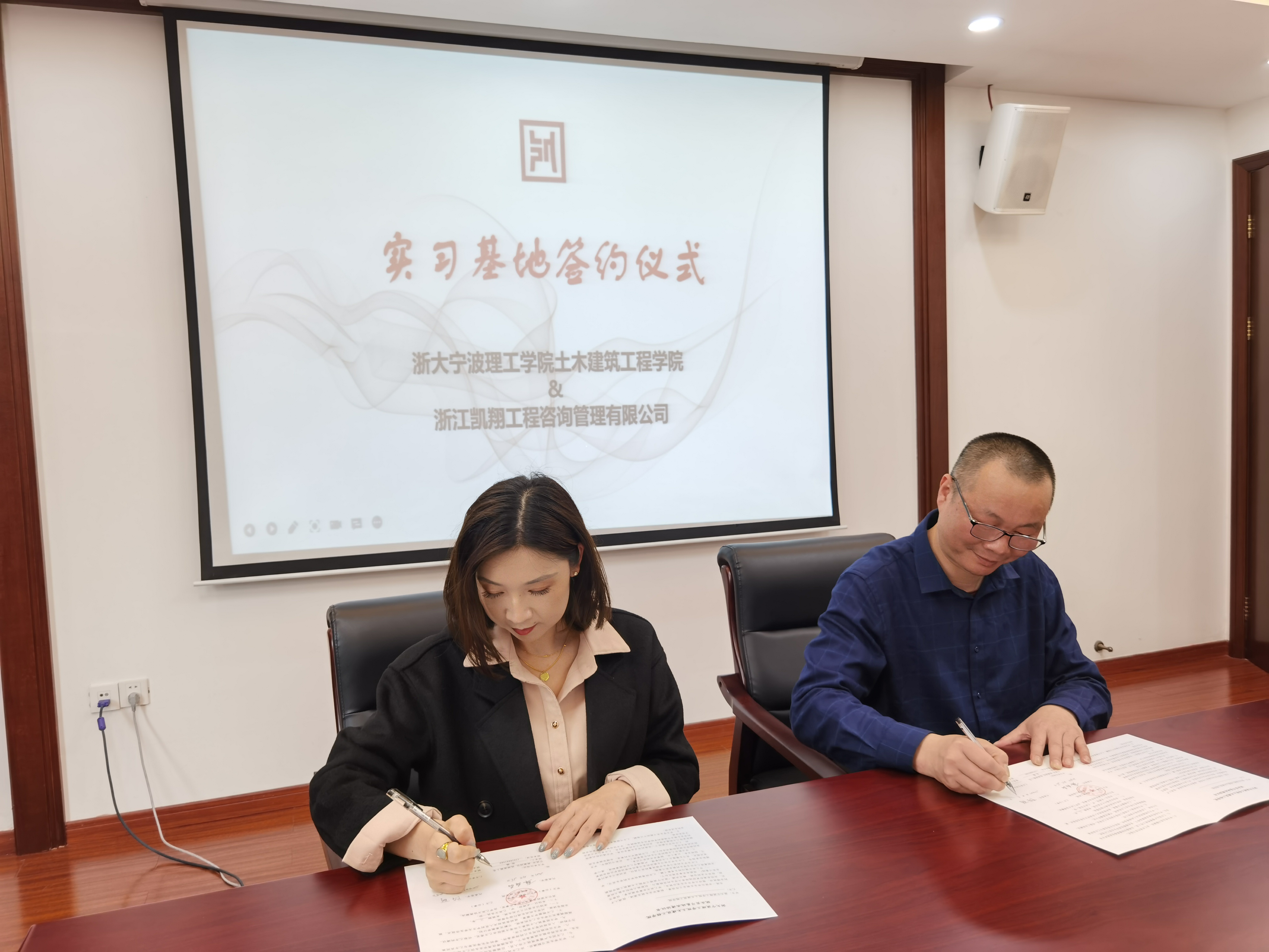 浙大宁波理工学院土木建筑工程学院党委副书记韩晶晶、思政主管张腾,浙江凯翔工程咨询管理有限公司总经理史乐、总经理王凯翔等出席签约仪式,并开展座谈交流。
