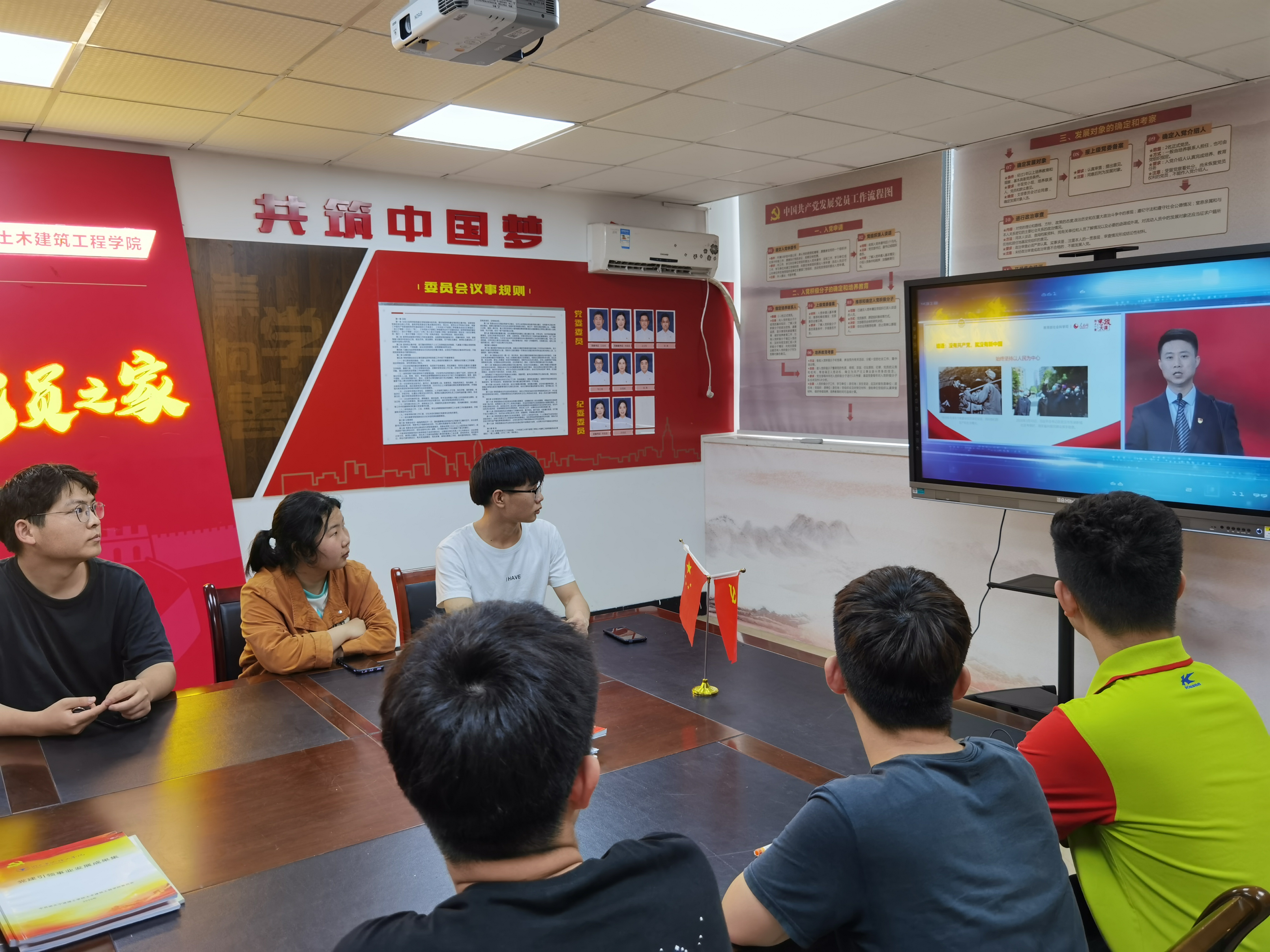 将“同上‘四史’思政大课”作为本学期先锋论坛重点推进内容,纳入党积极分子培训计划,组织入党积极分子现场集体观看“同上‘四史’思政大课”第二讲“四史讲堂——新中国史”。入党积极分子观看后积极发表观后感想。土木191班张国振感触颇深,他认为“作为新时代青年,我们应当肩负起建设祖国地重任,不断地学习,不断地武装自己,使自己成为一个有用之才,对社会有用,对国家有用。重温我们党100年的光辉历程,为中华民族和中国人民建立不朽的功勋,让我们更清楚地认识到,只有在中国共产党地领导下,坚持走中国特色社会主义道路,才能发展中国,才能实现中华民族的伟大复兴!”