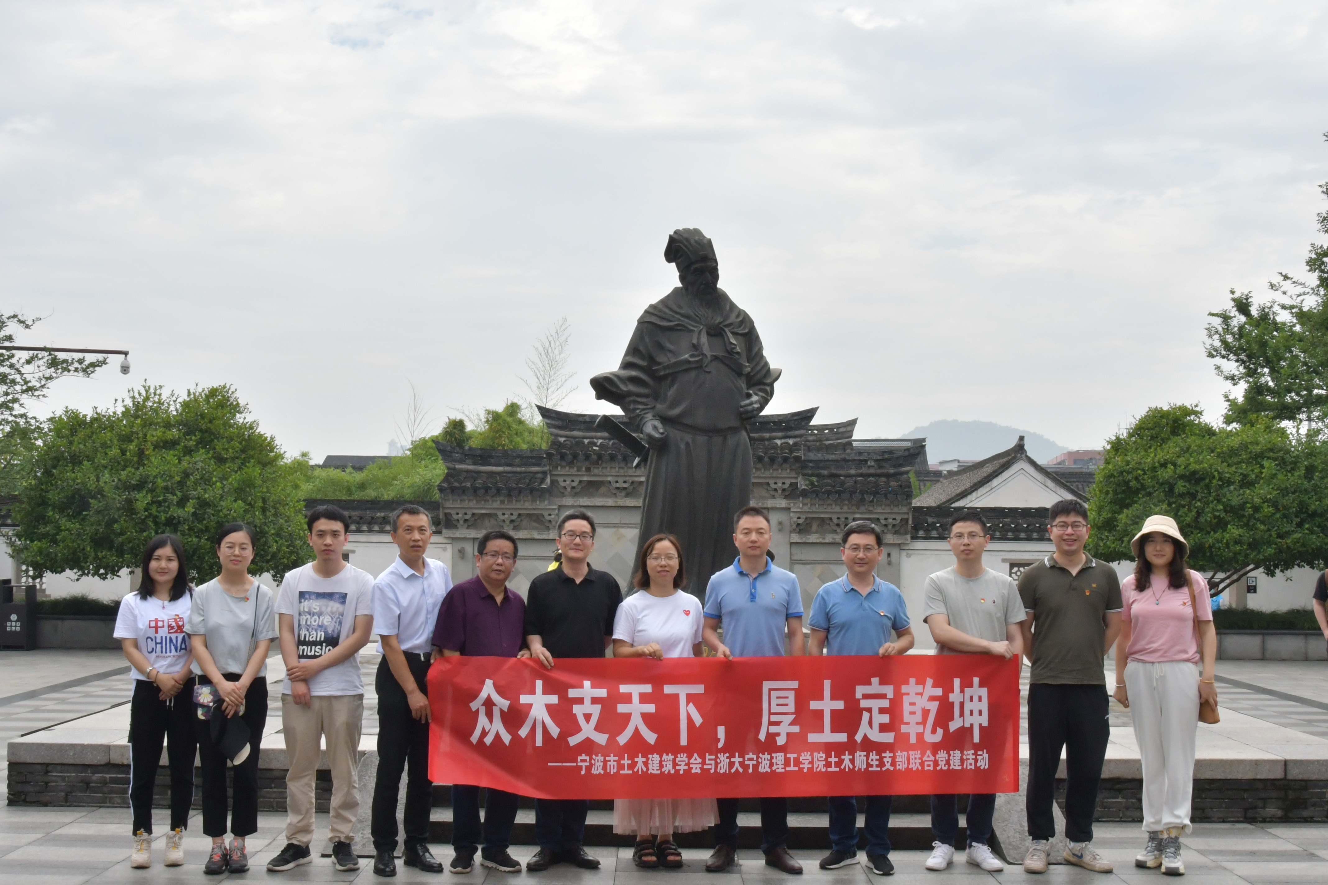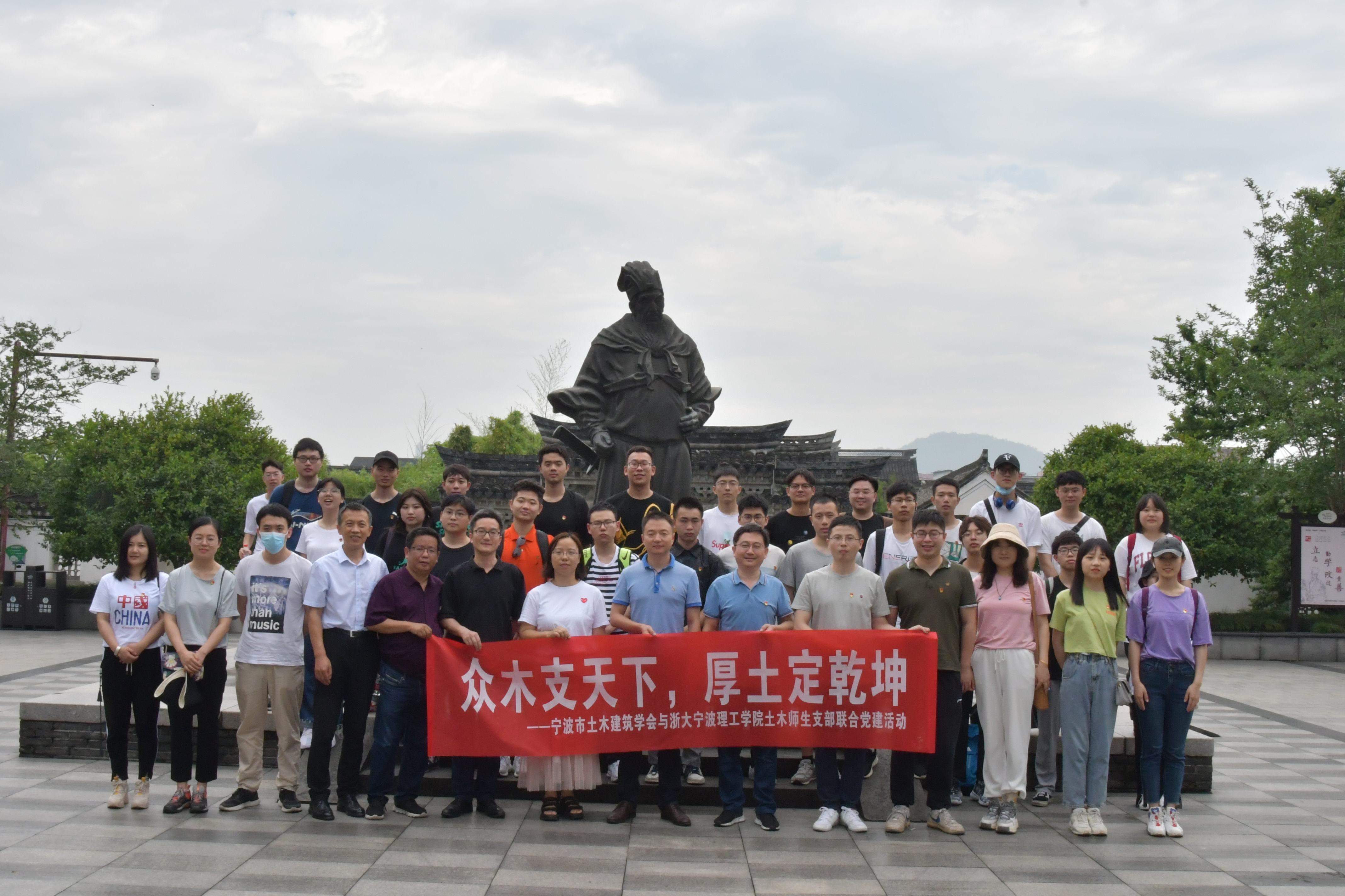 为迎接中国共产党成立100周年,深入贯彻落实习近平总书记重要讲话精神,2021年5月15日,浙大宁波理工学院岩土与市政工程研究所教工党支部、土木学生党支部师生党员代表与宁波市土木建筑学会专家党员赴余姚王阳明故居、鹿亭中村开展联合党建活动。学会专家与学生党员进行了面对面交流,围绕就业、学业、行业发展等方面存在的问题与困惑进行交流与分享。宁波市土木建筑学会专家团、土建学院岩土与市政教工党支部教师党员、土木工程学生党支部党员参与了此次活动。