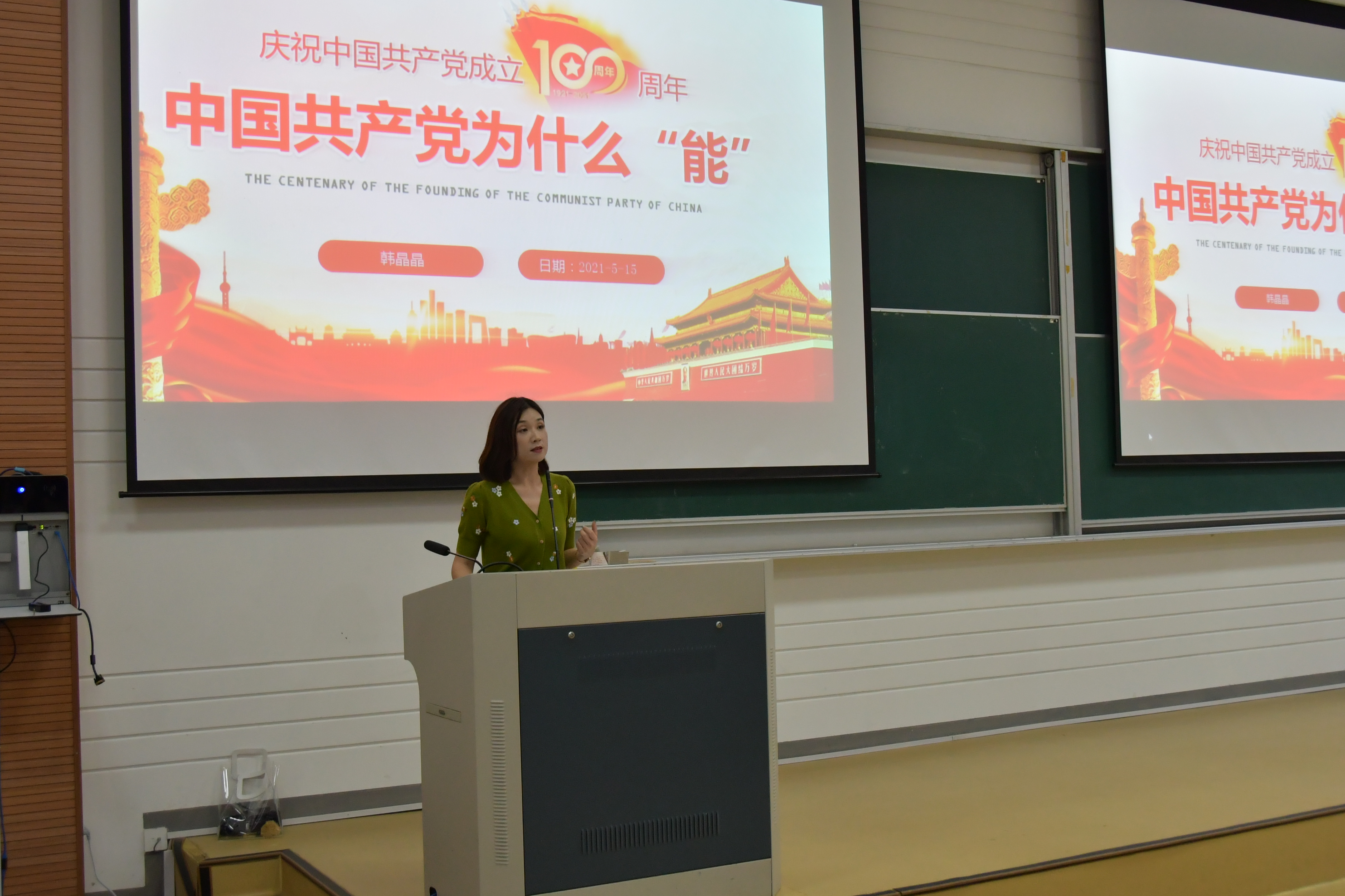 2021年5月15日下午18点开展了一节主题为《庆祝中国共产党成立100周年--中国共产党为什么“能”》的党课,土建学院党委副书记韩晶晶老师主讲。