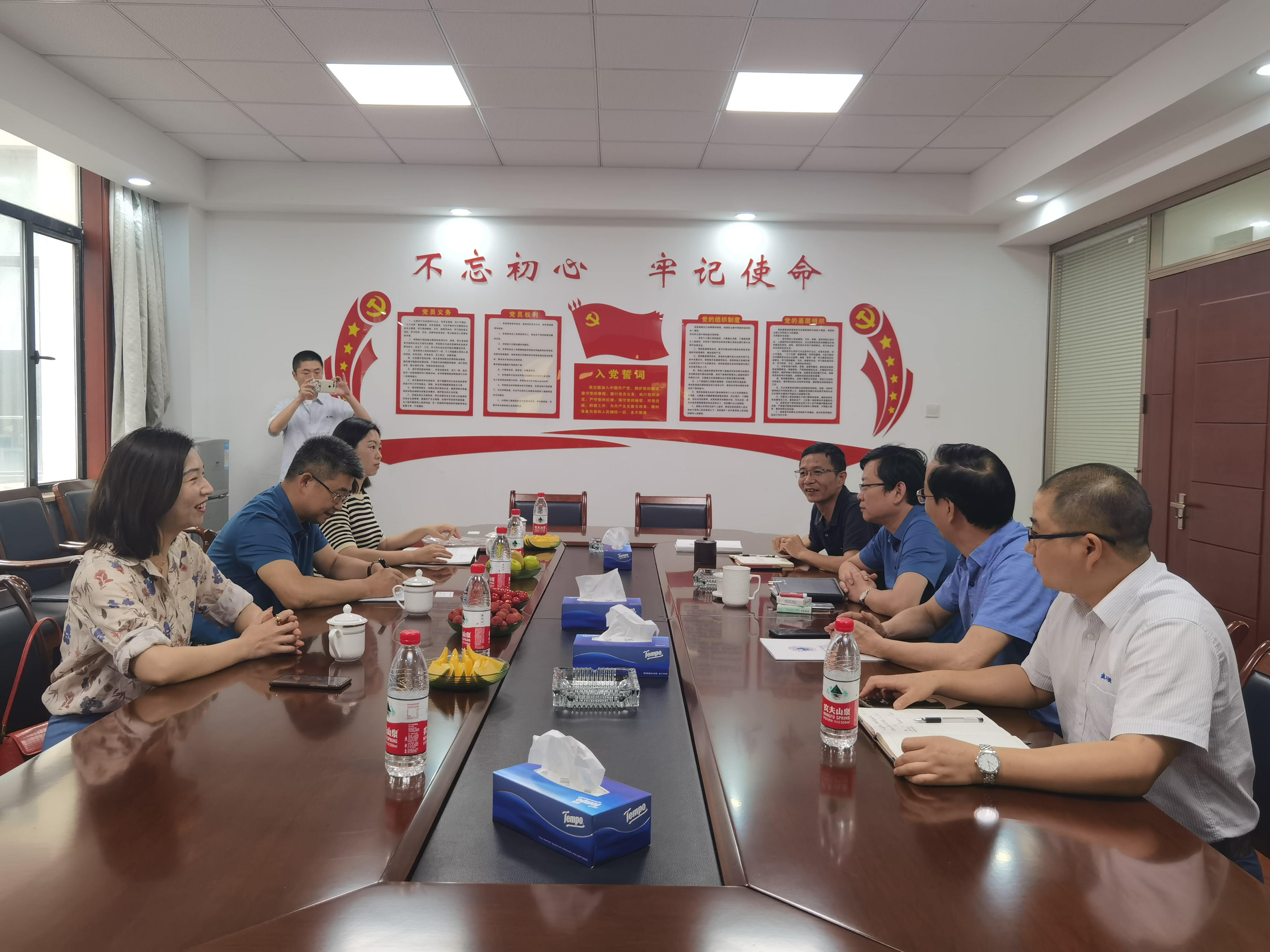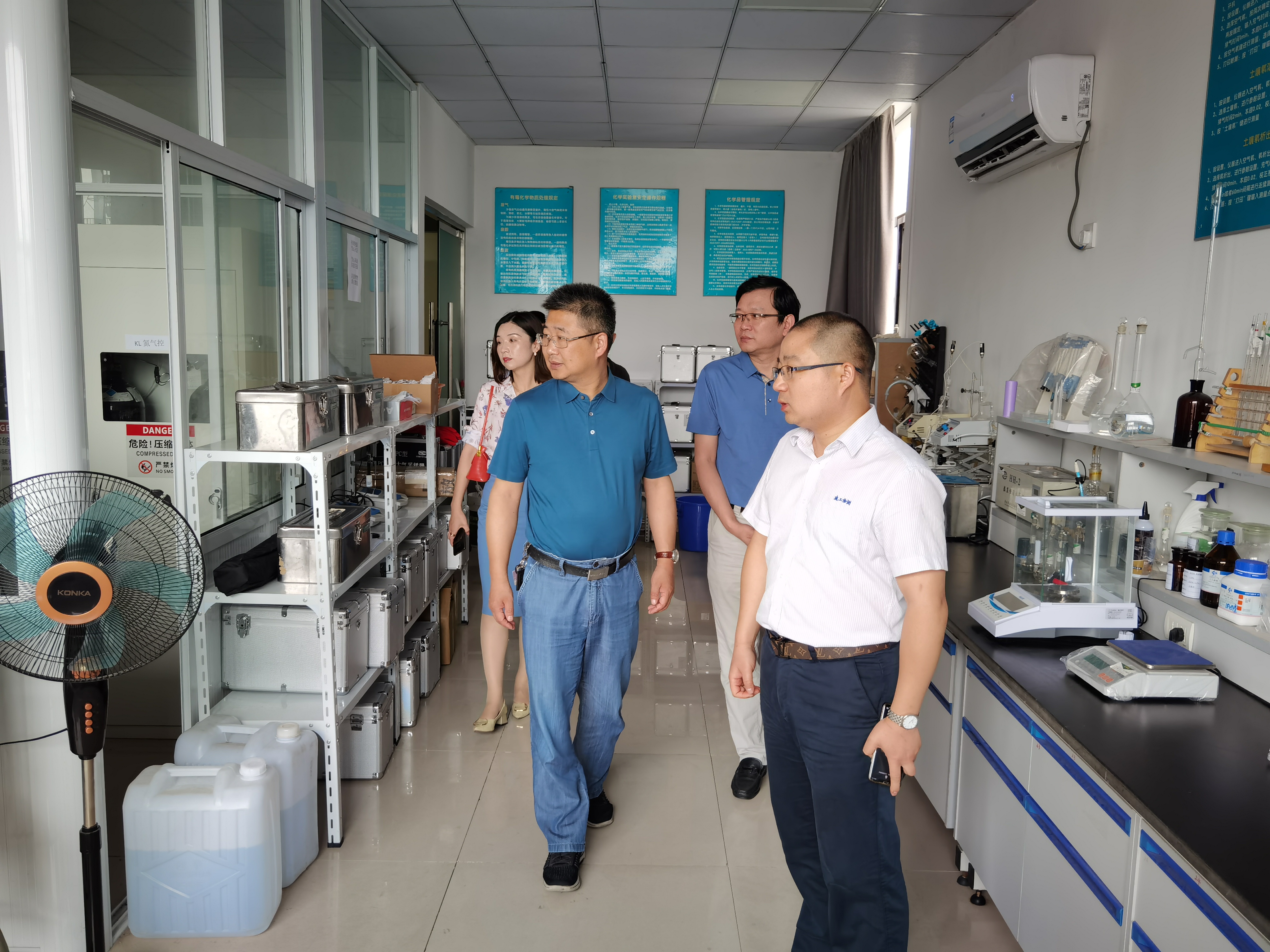 学院党委书记王银辉一行人参观了企业砼抗渗检测室、水泥检测室、防水材料检测室、级配检测室、砂石检测室、建机检测室、节能检测室等,对公司的标准化设备、企业文化、发展现状有了较为全面的了解。学院老师们对公司标准化的设施和场地表示肯定。