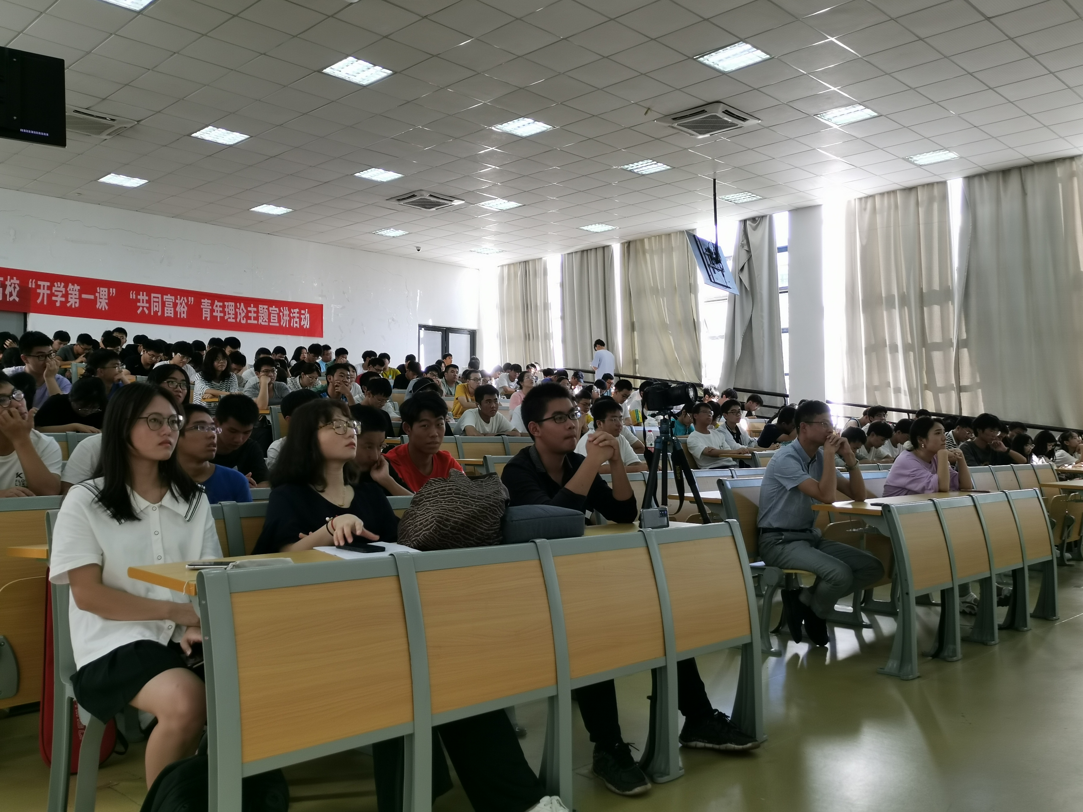 2021年9月26日,浙大宁波理工学院团委邀请到宁波市鄞州区“开学第一课”“共同富裕”宣讲团成员开展主题宣讲活动,土木建筑工程学院学生到场听讲。学院党委副书记邬旭东出席。