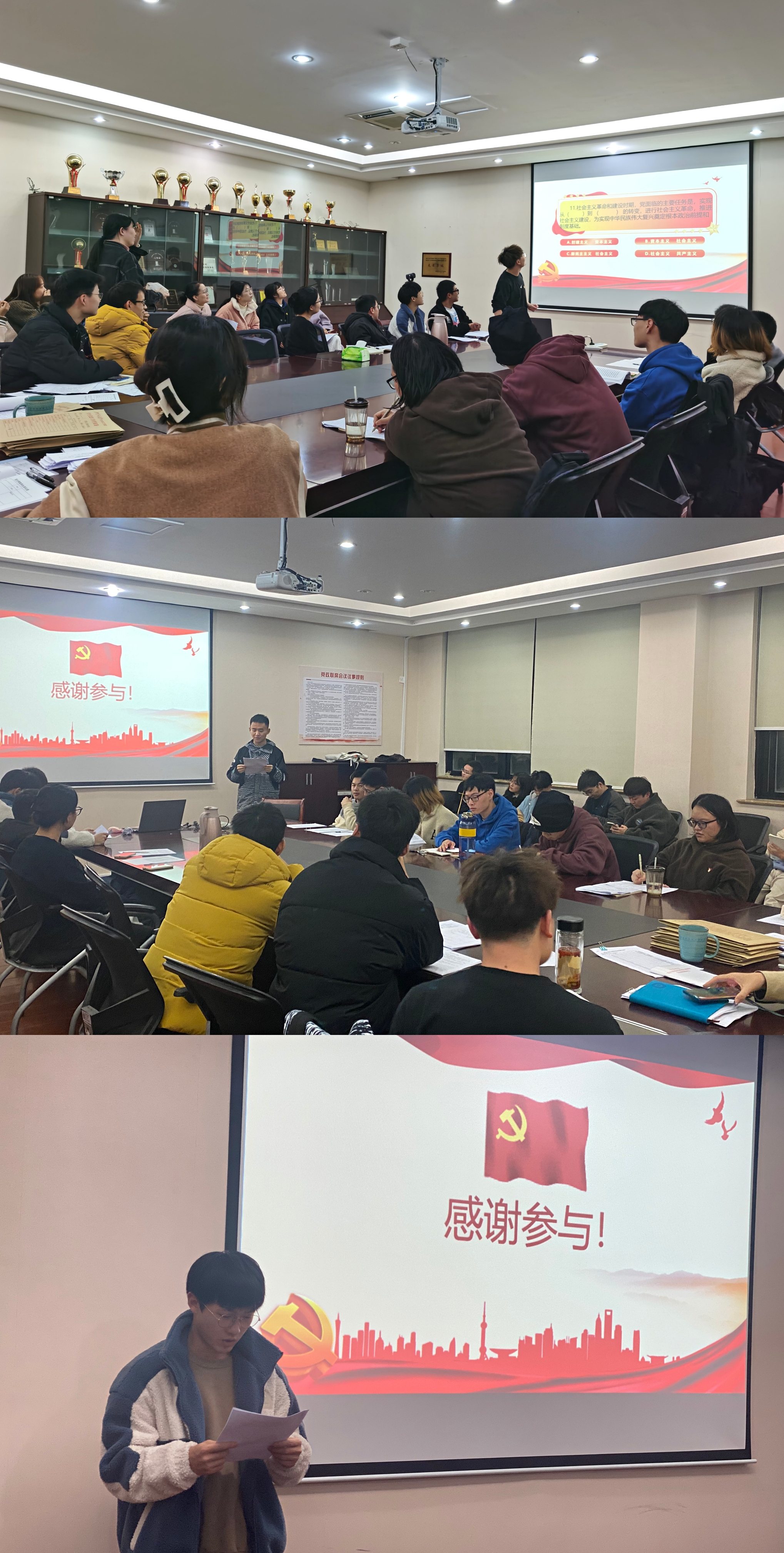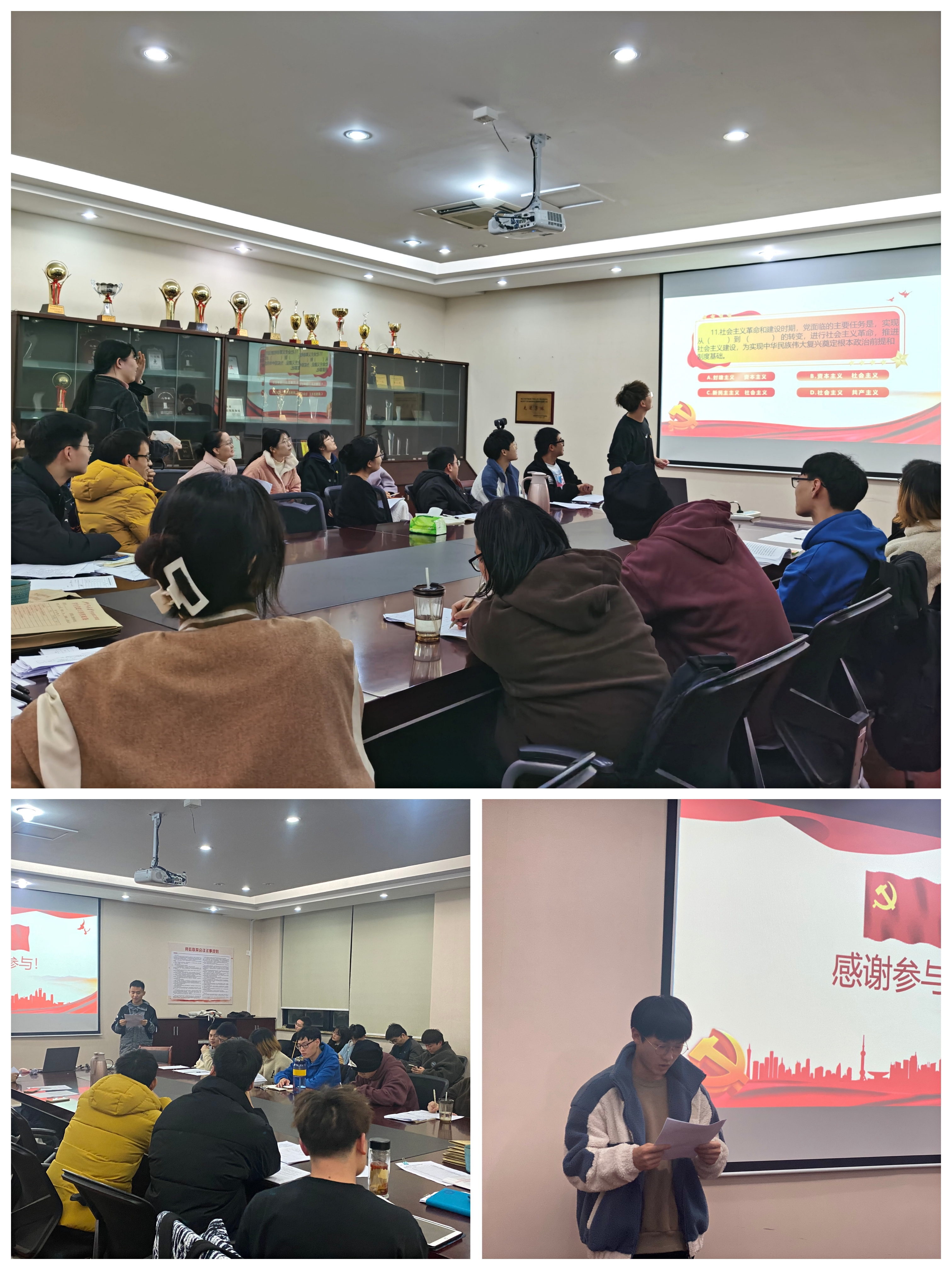 支部党员同志播放了党的十九届六中全会相关视频,并从党的十九届六中全会精神相关知识入手,开展了问答活动。在答题的过程中,同学们踊跃回答问题,学习党的十九届六中全会精神的热潮持续升温。会中,党员们畅谈自己对全会精神的思想感悟,党员们分享了自己的学习心得。他们提到作为大学生党员,我们应当从思想上,行动上提高认识,将会议精神转化为推动学习的动力。