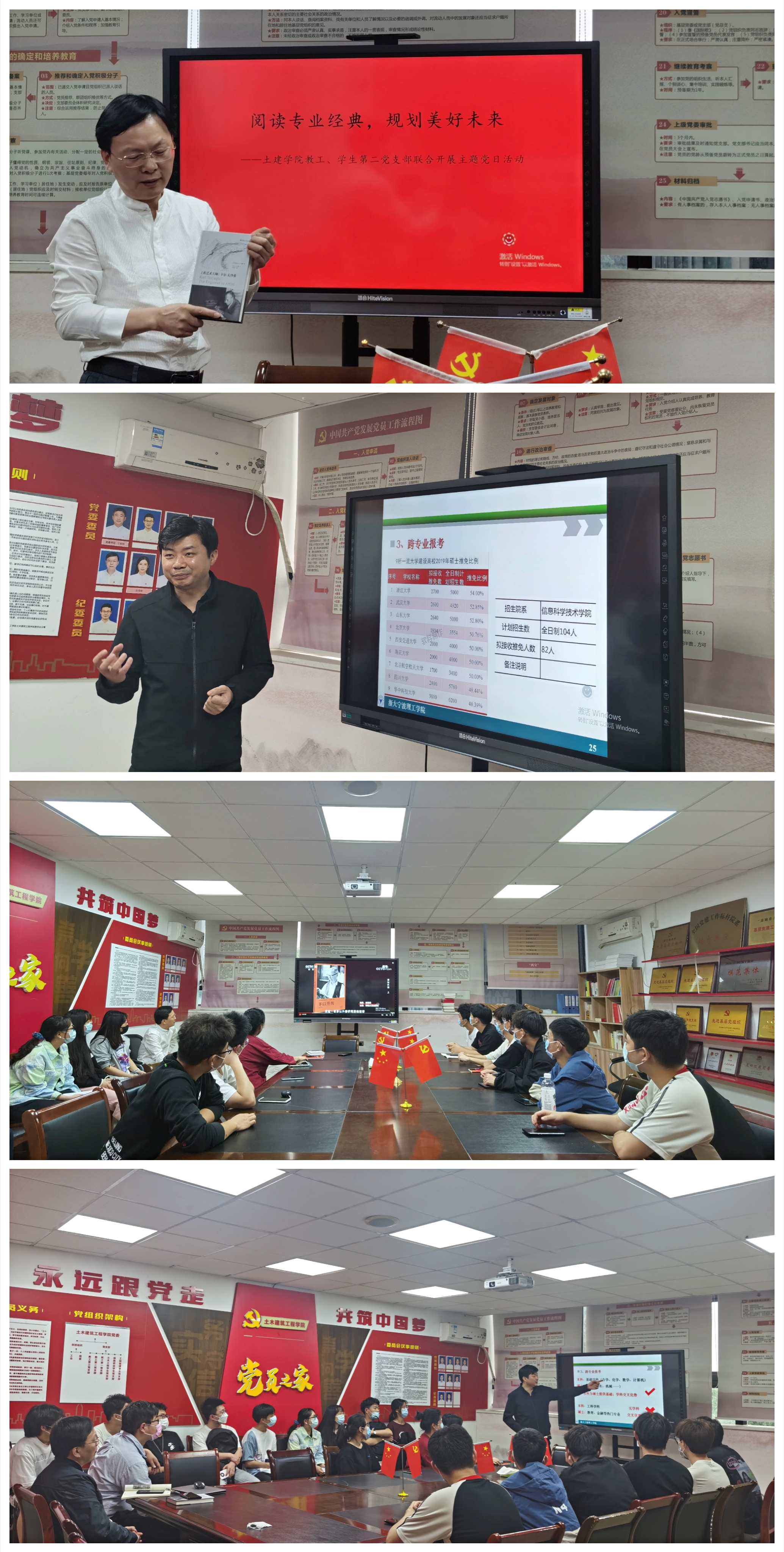 “阅读经典书籍,规划美好未来”。4月27日下午,土建学院教工第二党支部与学生第二党支部在学院党员之家联合开展主题党日活动,共读经典书籍。支部的师生党员、入党积极分子、团支部团员等参加活动。
