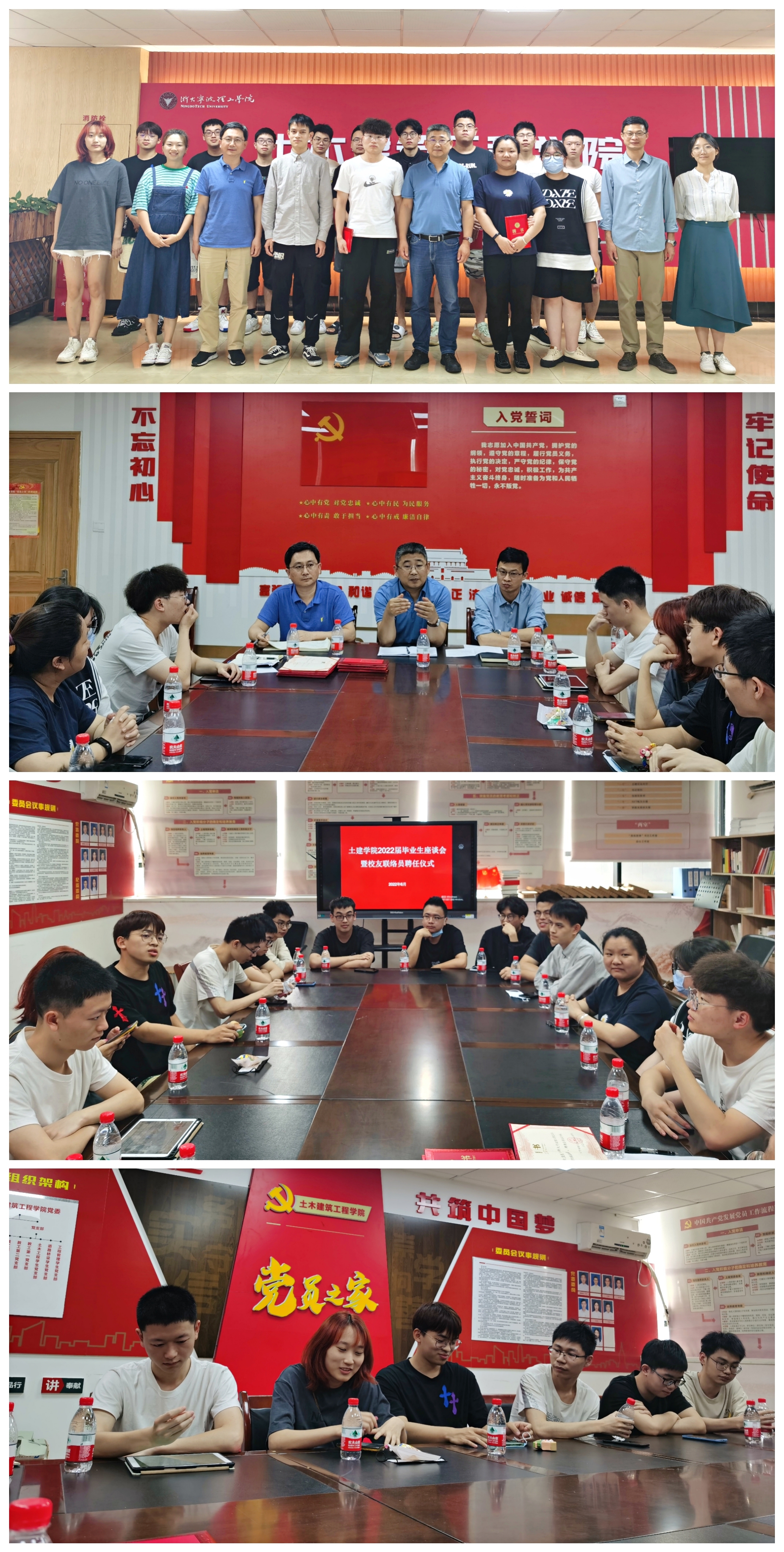 6月7日下午,土木建筑工程学院于党员之家举行2022届毕业生座谈会暨校友联络员聘任仪式。学院党委书记王银辉、副院长王文军、党委副书记邬旭东、学工办周星以及各班级毕业生代表参加了活动。