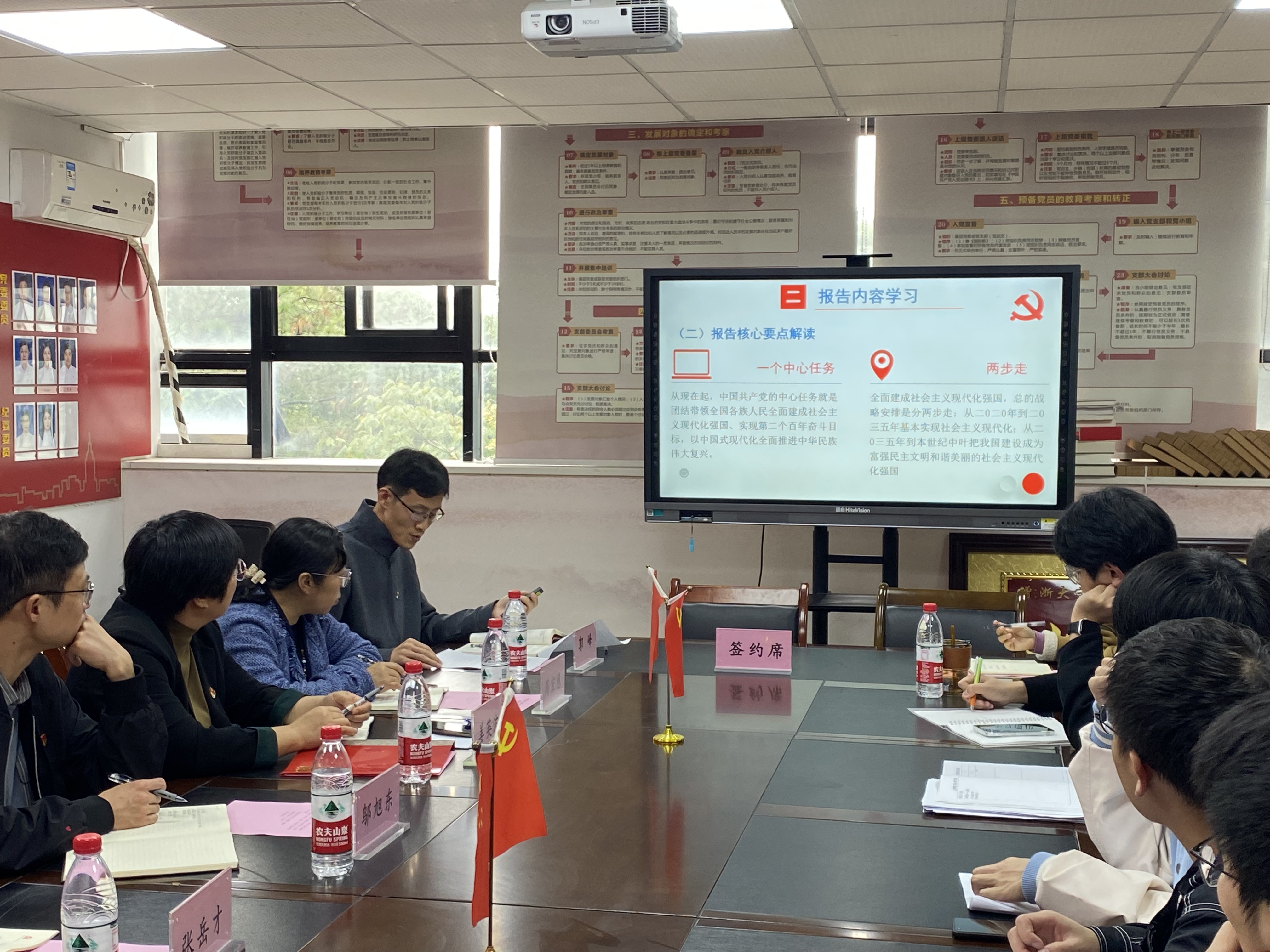 接着,郭峰老师领学党的二十大报告。他强调,要高举中国特色社会主义伟大旗帜,全面贯彻新时代中国特色社会主义思想,弘扬伟大建党精神,自信自强、守正创新,踔厉奋发、勇毅前行,为全面建设社会主义现代化国家、全面推进中华民族伟大复兴而团结奋斗。他对中国式现代化做了进一步解读,同时提到党的二十大报告中寄予青年的期盼,希望同学们从国家政策中明确专业未来的发展方向。