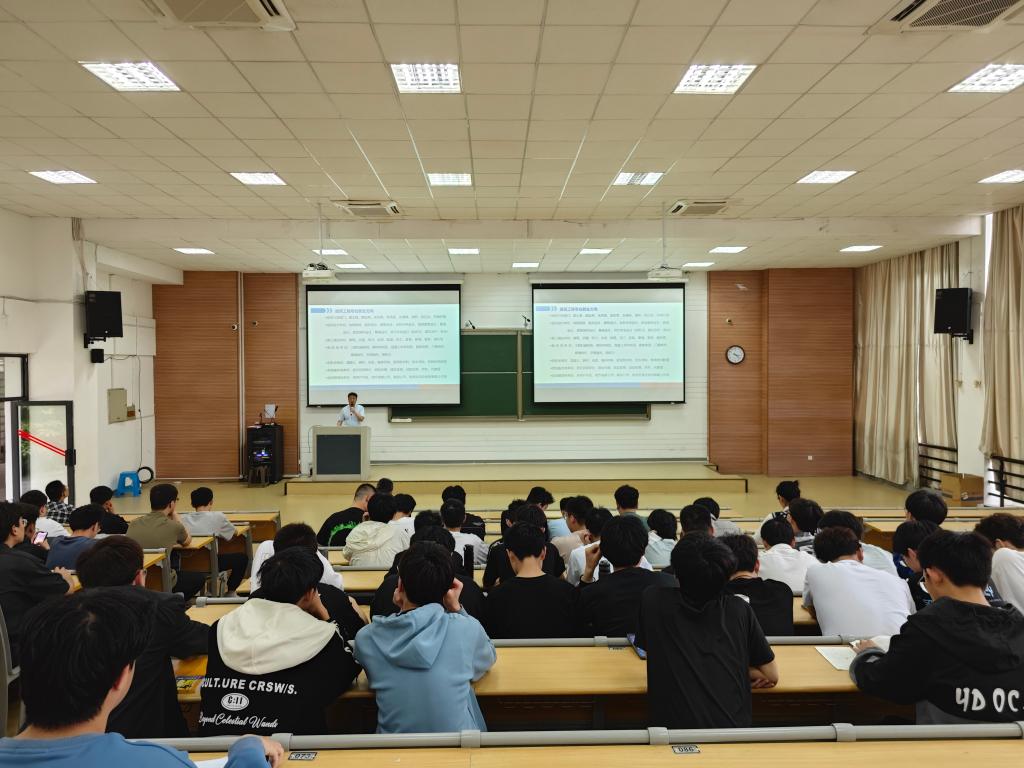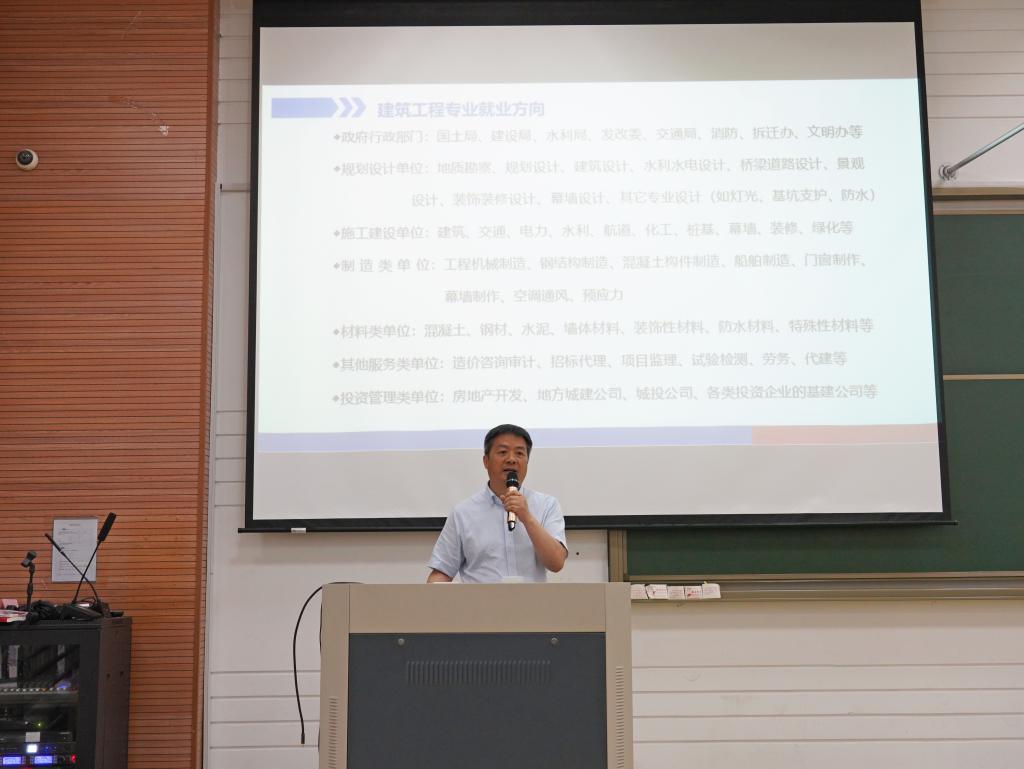 陈旭辉从自己的经历聊起,向大家介绍土木工程专业的就业方向。他告诉同学们,土木专业就业市场广阔、方向众多,勉励同学们要努力学习,将来必定能大有可为。他根据自己对行业的了解,和大家分享了建筑行业的施工专业分类以及项目部管理人员的岗位设置和工作内容,让各位同学对建筑行业有了进一步的了解。他希望大家在大学期间扎实学习专业知识,努力考取本专业的资格证书。他以省二建为例,详细介绍了施工企业的运行基本情况、福利待遇、人才培养模式,欢迎同学们毕后能够加入省二建。他还向各位同学提出5点建议,一是要具备吃苦耐劳的品质,宝剑锋从磨砺出,梅花香自苦寒来;二是要敢于表现自己,少年壮志当凌云;三是要尽早争取向党组织靠拢,为实现中华民族的伟大复兴努力奋斗;四是要勤于学习,学有余力多考取专业证书;五是要善于感悟生活,培养几项业余爱好。