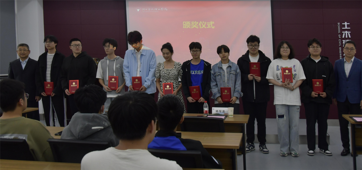 学院党委书记刘群娣宣读获奖名单。杨军龙总经理、王国鸿副总经理、王银辉院长、刘群娣书记分别为获奖同学颁发获奖证书并合影留念。