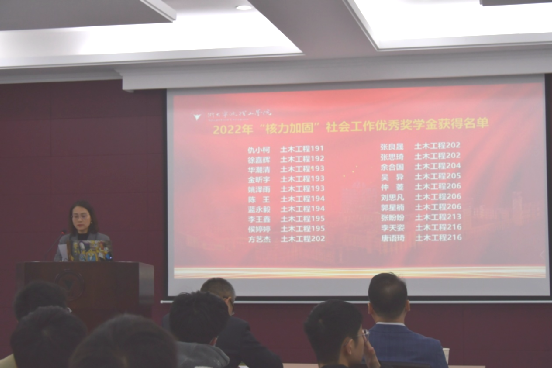 5月11日下午,土建学院2022年“核力加固”社会工作优秀奖学金颁奖暨2023年学风建设启动仪式在SA305举行。浙江核力建筑特种技术有限公司总经理杨军龙、副总经理王国鸿,土建学院执行院长王银辉、党委书记刘群娣师生代表等参加颁奖仪式。仪式由学院党委副书记邬旭东主持。