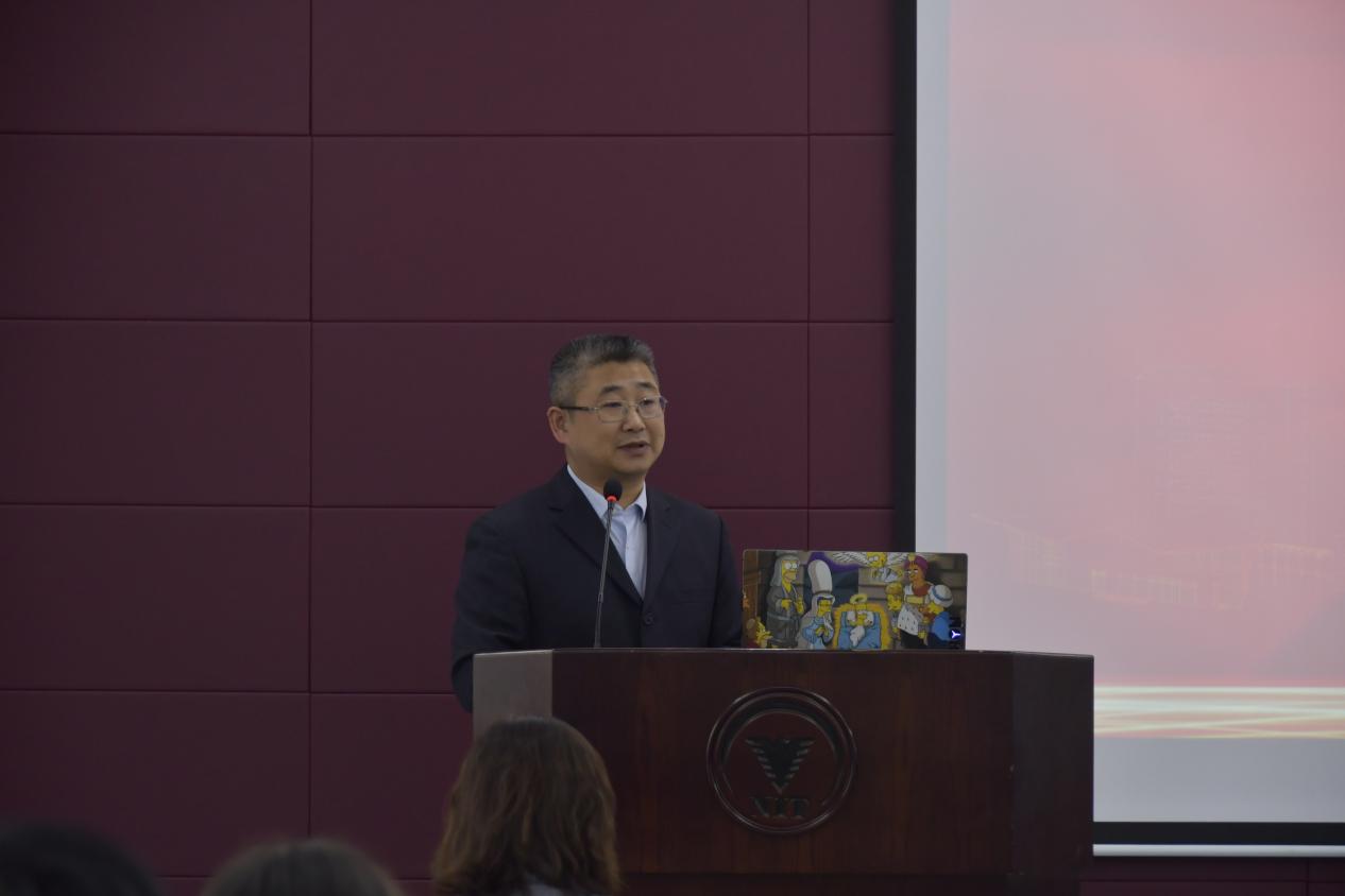 学院执行院长王银辉讲话。对浙江核力建筑特种技术有限公司表示感谢,同时对获奖同学表示祝贺,感谢大家为学院发展做出的贡献。他表示,获奖代表着过去,但是荣誉会一直伴随,希望毕业班的同学能够继续发挥好先锋示范作用。他详细介绍学院“砼”文化。他表示“砼”就是混凝土,他希望全体土建人深刻领悟“凝聚力、抗压性、可塑性、包容性”为内涵“砼”文化精神,不断继承发扬学院特色文化,把它当作人生一笔宝贵的精神财富。