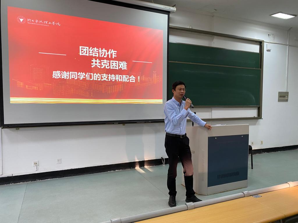 邬旭东老师讲话。他表示,校园修缮是改善学校教学环境和学生居住条件的一件大事,土建学院将积极配合学校做好学生保障工作。他强调,党员和主要学生干部能发挥带头作用,齐心协力配合学校寝室修缮,安全有序的做好搬迁工作。他表示,学院会做好后勤保障工作,尽量满足同学们的合理需求。最后,他鼓励大家努力学习、珍惜校园时光,积极参与课外活动和志愿服务,度过充实、美好的大学时光。