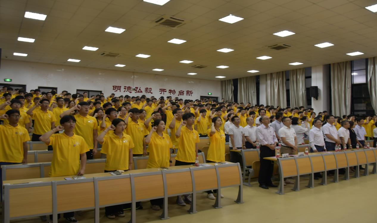 最后,厉骅骏同学还带领全体新生进行宣誓,用铮铮誓言表达同学们勤奋学习、求是创新,自愿献身土建行业,传承大国工匠精神的坚定决心。