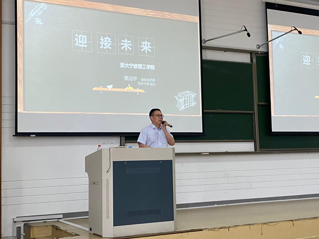 宁波市建设集团股份有限公司人力资源部经理姜远宇为同学们带来“如何择业”的分享。他根据自己20多年的工作经历,向同学们讲解了不同岗位的工作内容和发展路径,分析了行业发展现状,鼓励同学们要通过全方位的、立体的学习来了解行业,有目标地实习,擅于总结,工作中要明确个人发展目标。