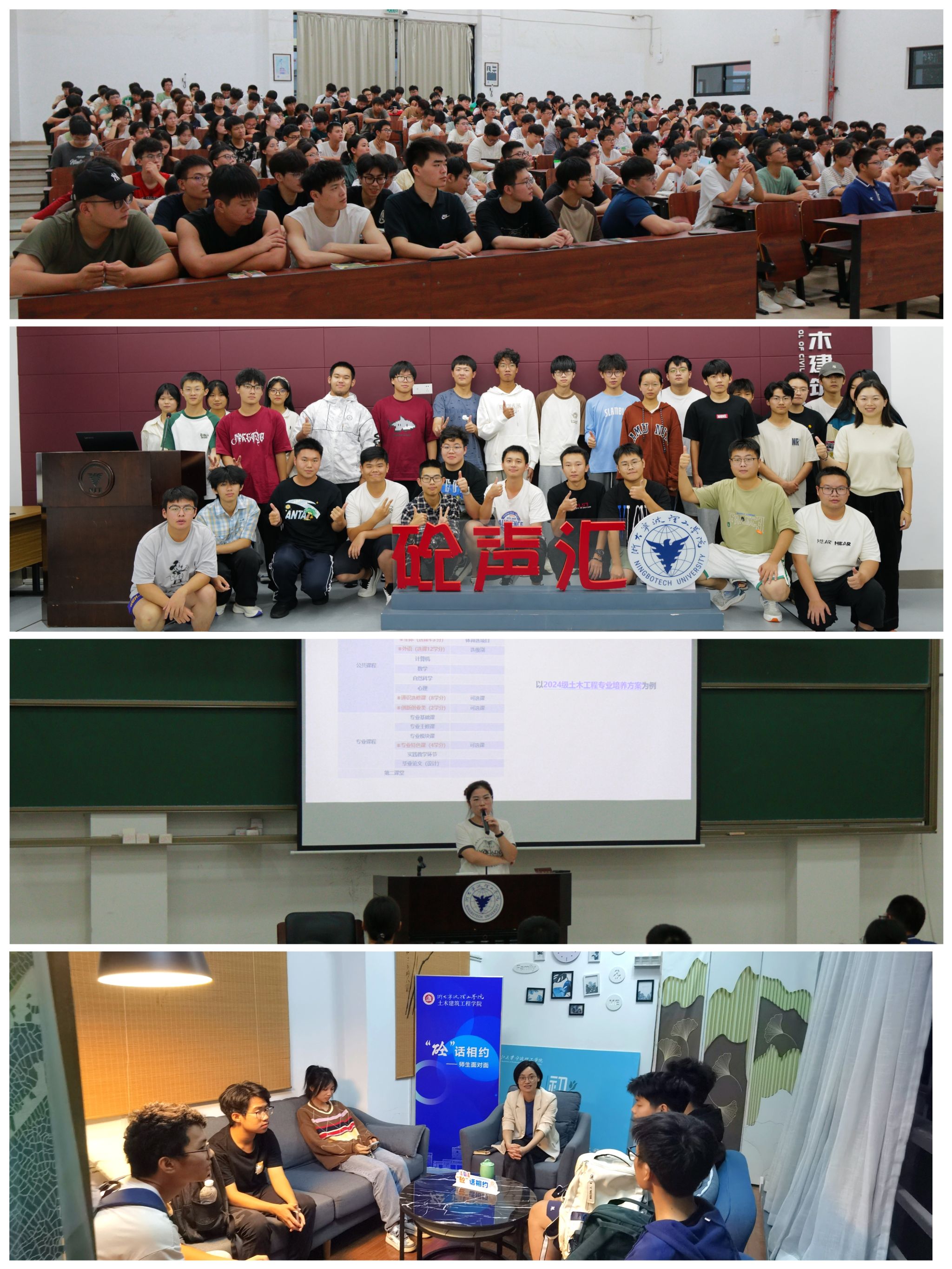 9月12日,学院学工办、教务办共同组织开展新生进行规章制度学习培训,通过对学校评奖评优、违纪处分、学位证授予、专业培养方案、学籍管理规定等文件政策进行解读,帮助同学们了解熟悉校纪校规,树立规矩意识,养成良好学风校风。此外,学院各系通过专业导论课、专业见面会等不同方式向新生介绍专业设置、学科优势及发展前景,引导新生对所学专业建立基本认知,合理制定学业规划,树立专业发展目标,激发学习兴趣,为未来的学习和职业生涯奠定基础。学院还开展围绕“如何过好大学生活”举行“砼”声汇、“砼”话相约专题活动,搭建新生与师长之间充分交流的平台,帮助新生尽快适应大学学习生活。