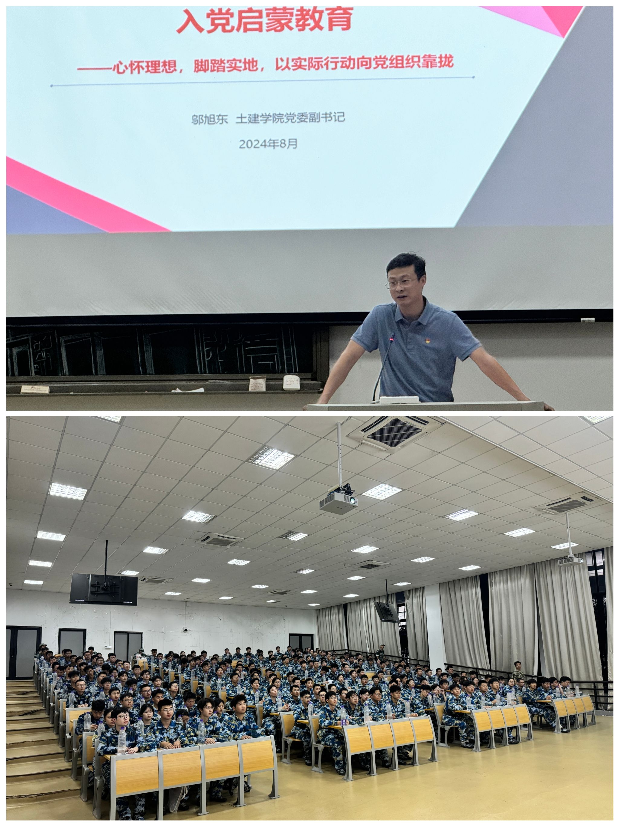 8月30日,学院在SB104举行2024级新生入党启蒙教育。学院党委副书记邬旭东担任主讲,带领新生一同回顾了中国共产党的百年奋斗史,深刻领会中国共产党百年奋斗的伟大成就。通过列举一些英雄故事和身边的优秀党员示例来勉励同学们继承和发扬光荣传统、激发自身的奋进力量,希望同学们要端正入党动机、积极学习党章内容,在日常学习、生活、工作中以高标准要求自己,用初心砥砺信仰,用实践增强信心,用奋斗谱写青春,争取早日加入中国共产党。