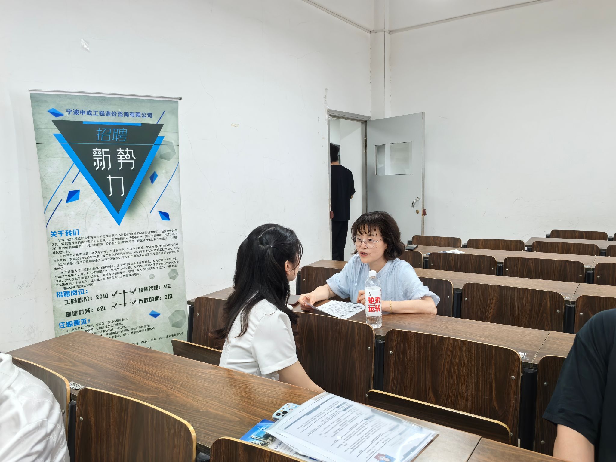 招聘会伊始,参会学生通过企业人员的讲解以及宣传手册对招聘单位进行了基本了解。国骅集团有限公司从房地产开发起步,业务领域逐步拓展至建筑施工、金融贸易等多元领域,宣讲中展现出强大的企业实力与广阔发展前景;浙江至方建设有限公司围绕企业核心业务、人才培养体系、公司福利制度了进行深入讲解。宁波中成工程造价咨询有限公司着重展现公司在工程造价咨询领域的专业优势。企业的介绍,让同学们对企业的运营模式、岗位需求和职业发展路径有了清晰认知。